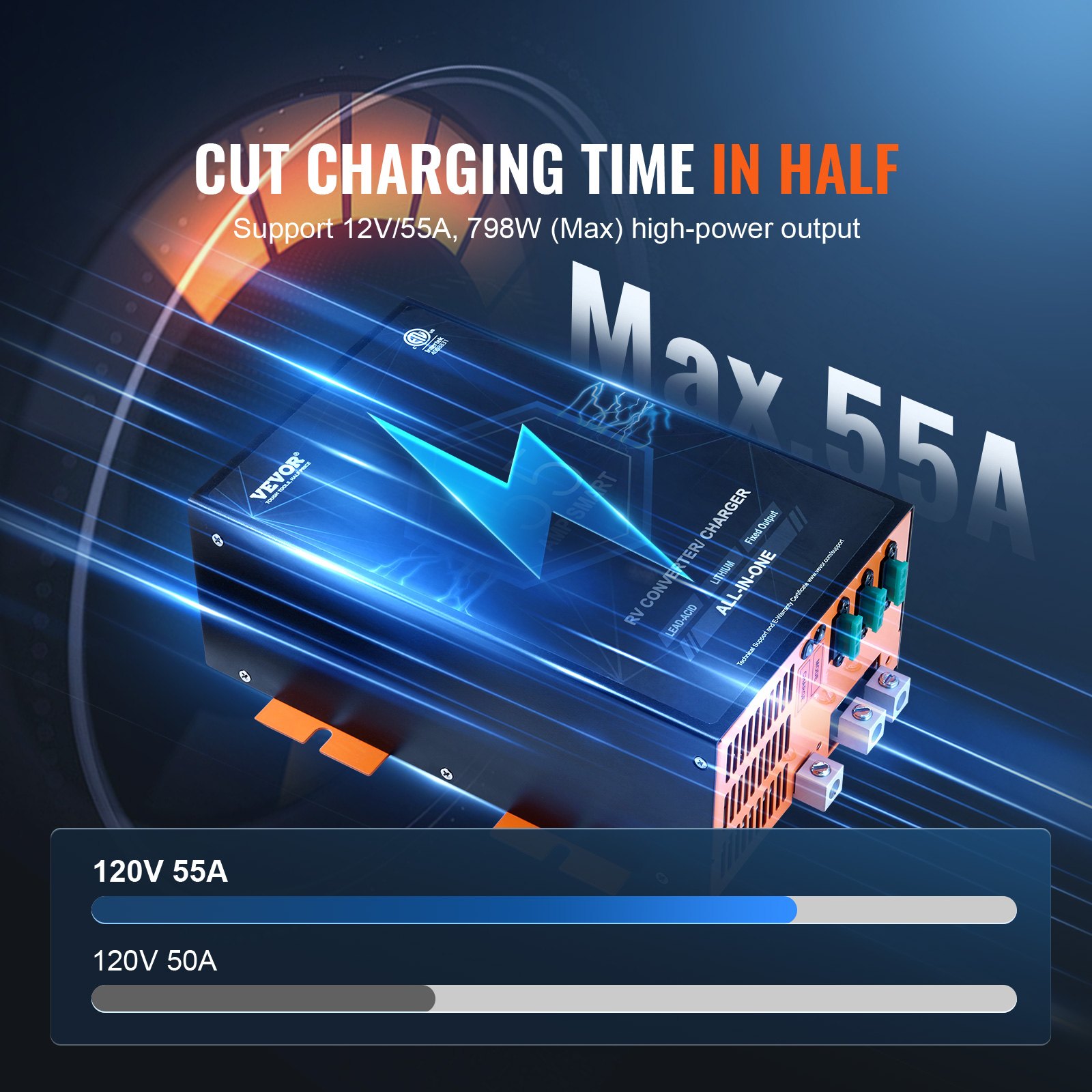RV Converter 55 Amp 110V AC To 12V DC RV Power Converter Battery Charger