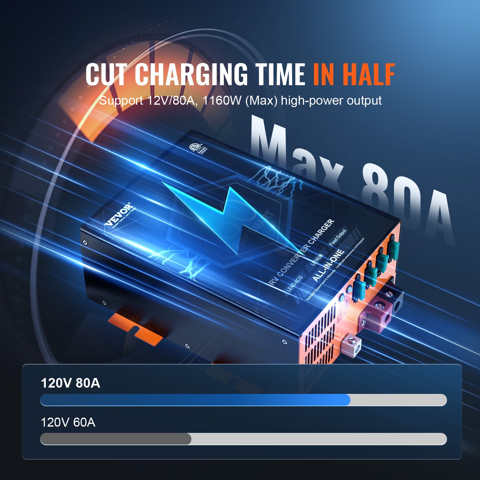 RV Converter 80 Amp 110V AC To 12V DC RV Power Converter Battery Charger