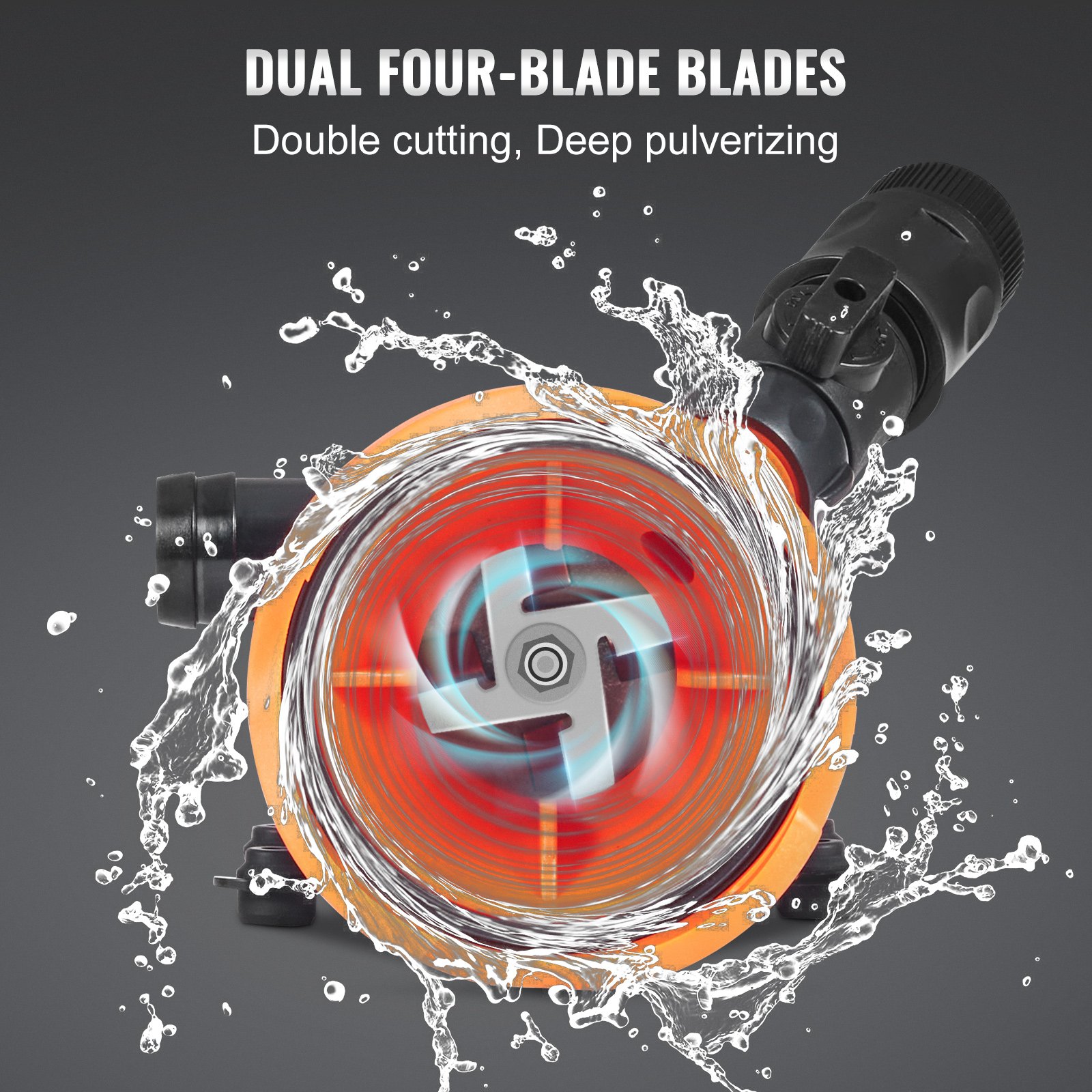 Powerful Function: The sturdy dual four-blade impeller of the quick-release macerator pump efficiently shreds solid debris into small particles, which can be quickly expelled through the 1 in/25.4 mm outlet. It is equipped with a garden hose joint, allowing easy connection for automatically cleaning any remaining residue inside the pump.