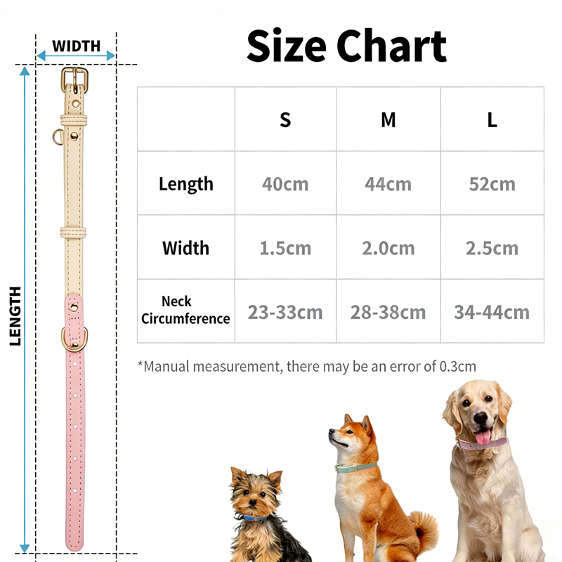 【Durable and Easy to Clean】The collar is made of soft and durable leather and sturdy hardware, and the leather is reinforced with two stitches on top of the leather, making it more durable and stronger than canvas material. It is difficult for pets to escape. It is also easy to clean, so even if your dog wears it and play with muddy water, it will look like new.