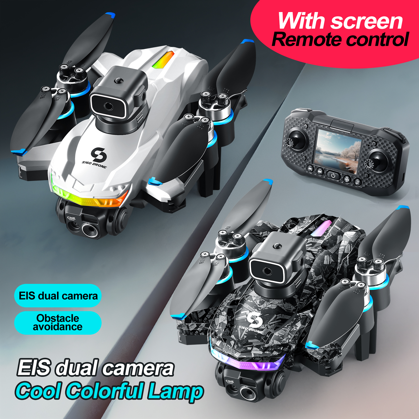 S160 screen remote control brushless drone quadcopter aerial photography aircraft with obstacle avoidance, optical flow, and lights
