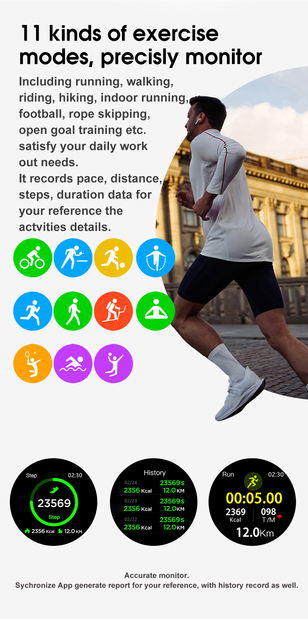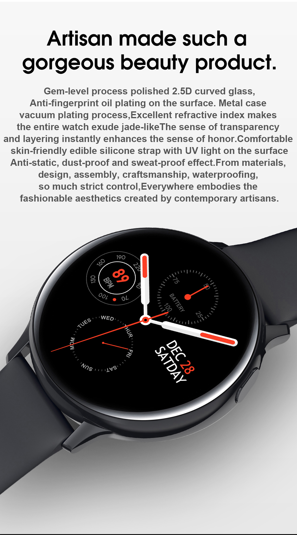 Main features: heart rate, ECG, blood pressure, blood oxygen, steps, stopwatch, music control, Bluetooth camera