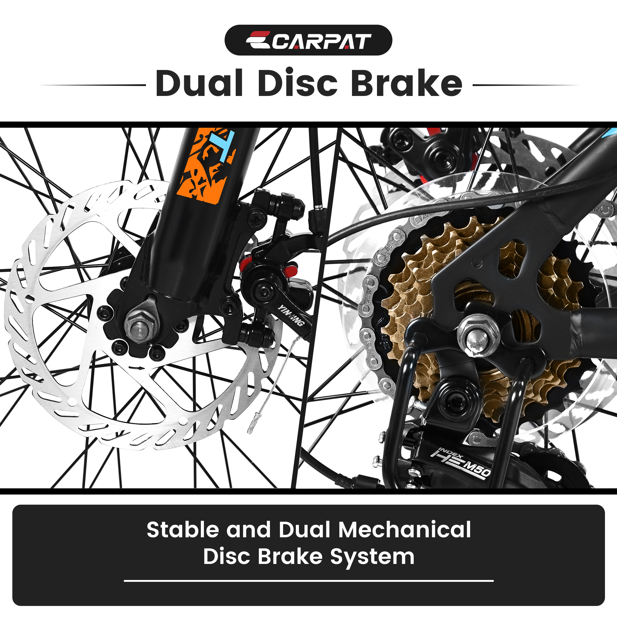 [Great Braking System] - The Elecony Mountain Bike has simple yet sophisticated mechanical disc brakes that allow for more precise and controlled braking. Mechanical disc brakes are more effective than rim brakes, helping to keep you safer when riding at high speeds, down mechanical disc brakes are more effective than rim brakes, helping to keep you safer when riding at high speeds, down slopes and in wet and slippery conditions.