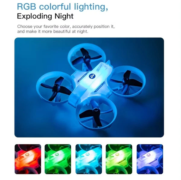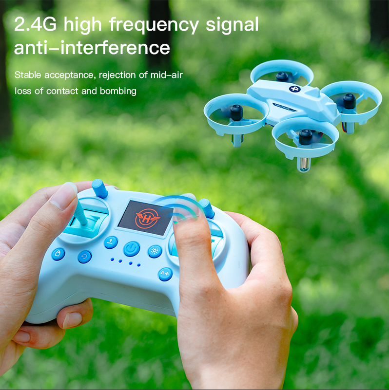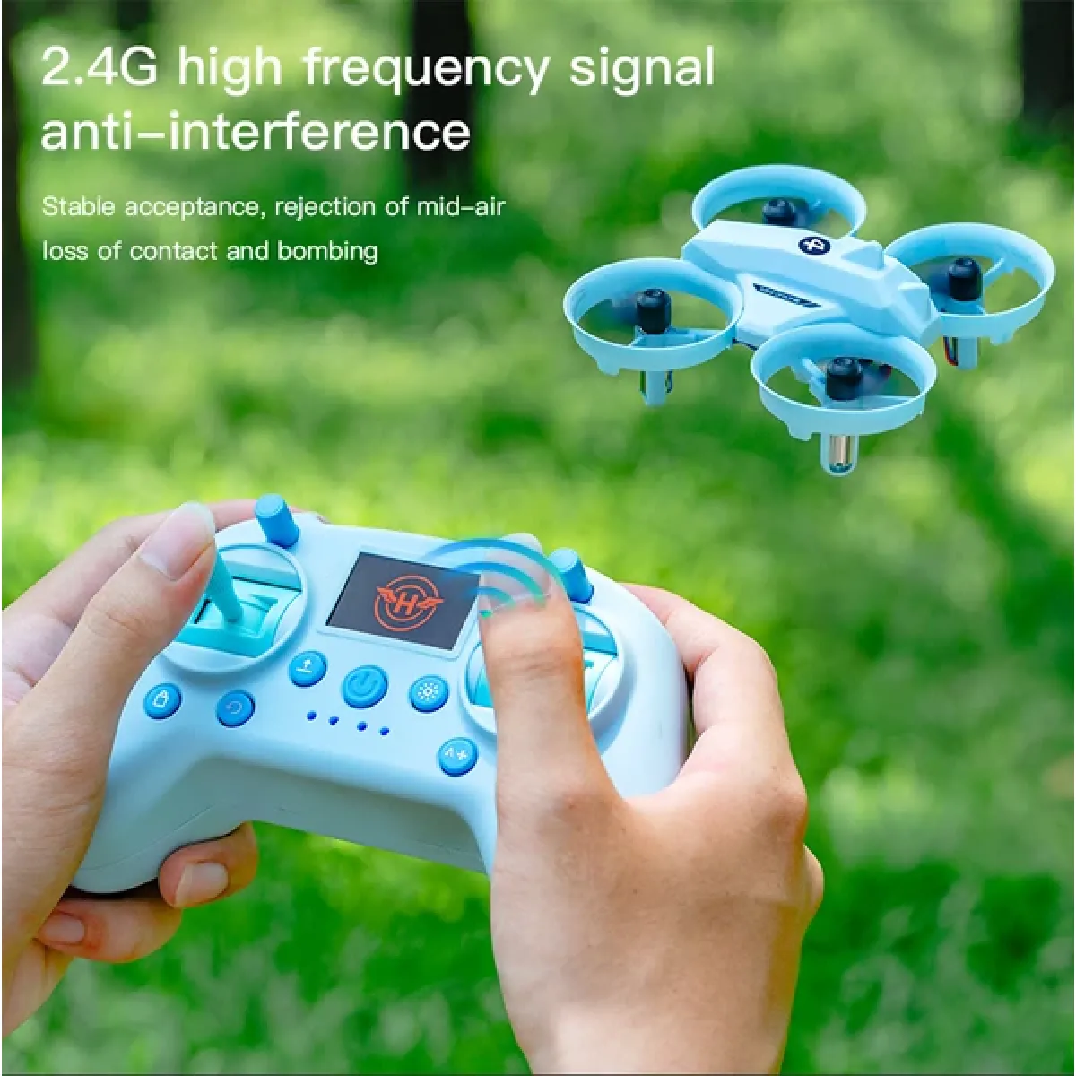 Product Description Introduce your child to the exciting world of flight with our Mini RC Drone, designed specifically for kids and beginners. This compact quadcopter combines fun, safety, and ease of use, making it the perfect first drone for young pilots. Key Features: 2.4G Anti-Interference Technology: The advanced 2.4G remote control system provides a stable and reliable connection, effectively rejecting interference and preventing mid-air loss of contact, ensuring a smooth and worry-free flight experience. Beginner-Friendly Controls: Intuitive headless mode and altitude hold make it incredibly easy for kids to fly. The drone automatically maintains its height, so young pilots can focus on steering without worrying about controlling the throttle. Fun Flight Modes: Perform exciting 360° flips and rolls with the push of a button, adding an extra layer of excitement to every flight. Safe & Durable Design: Equipped with protective propeller guards to prevent damage and ensure safe operation, especially for younger users. The lightweight and durable construction can withstand minor bumps and crashes. Portable & Compact: The pocket-sized design makes it easy to take anywhere, whether you're playing indoors or exploring the great outdoors. Whether you're looking for a fun toy for your child or a great gift for a young aviation enthusiast, our Mini Drone is the ideal choice. It's not just a drone; it's a gateway to endless fun and adventure.