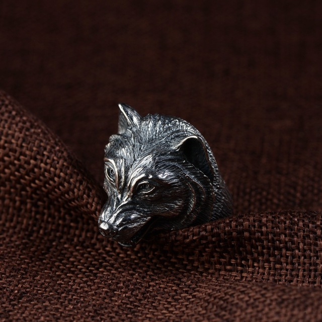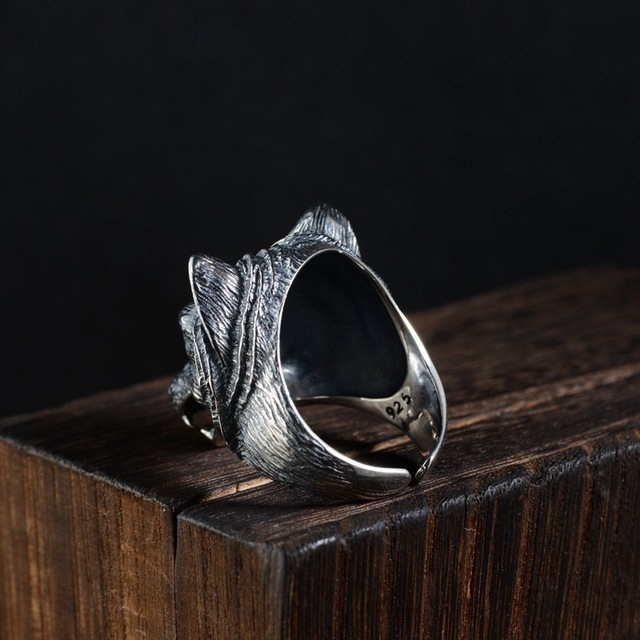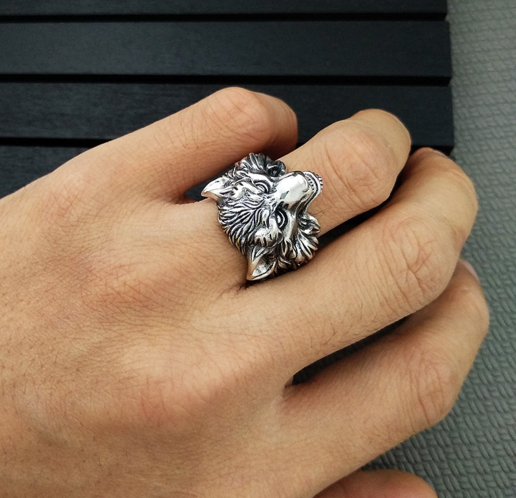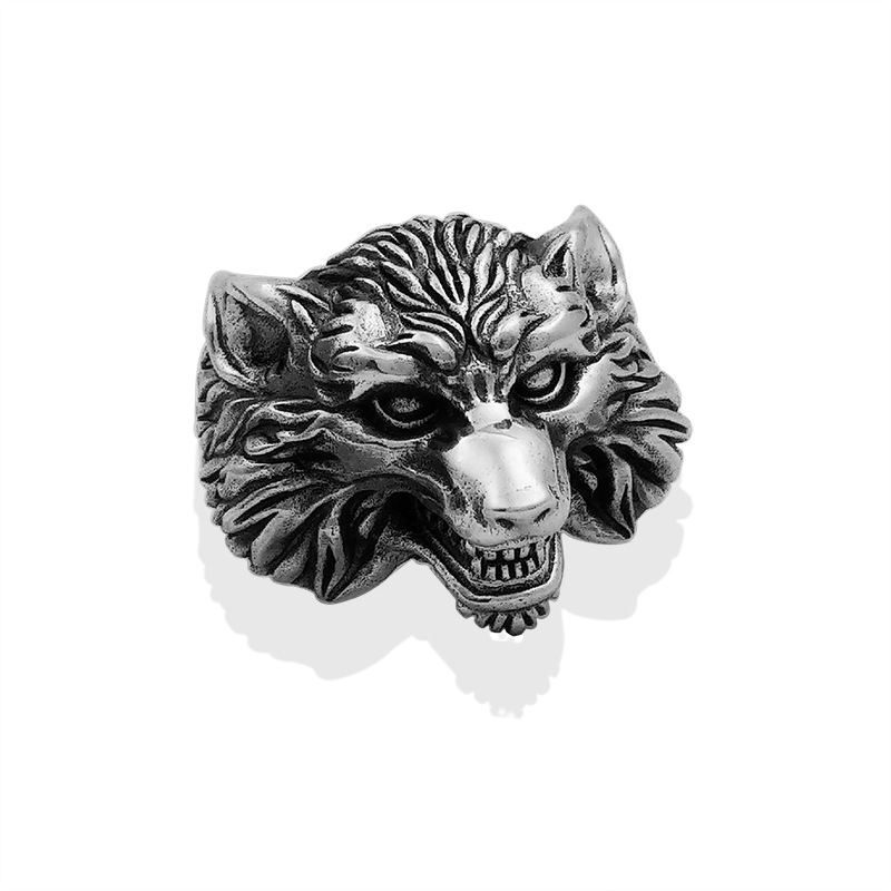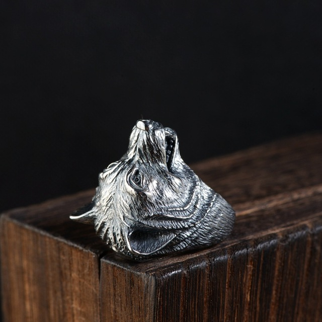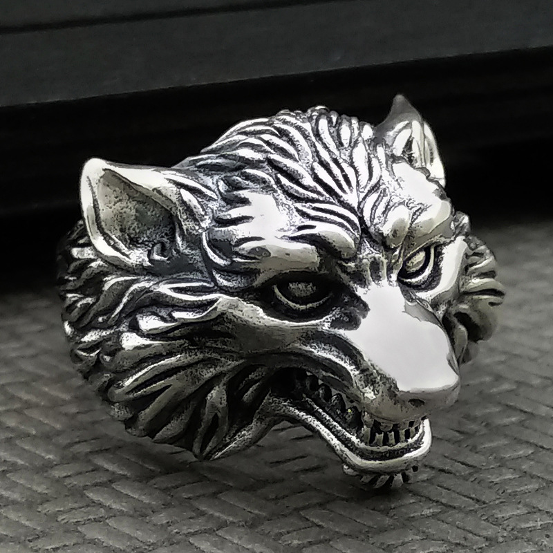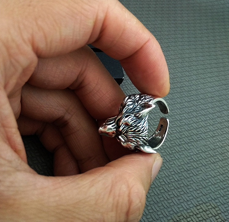 【Baby Name】 S925 Silver Wolf Head Open Silver Ring