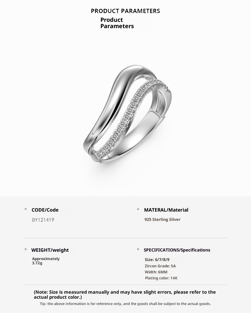 Size: no.6, no.7, no.8, no.9, opening