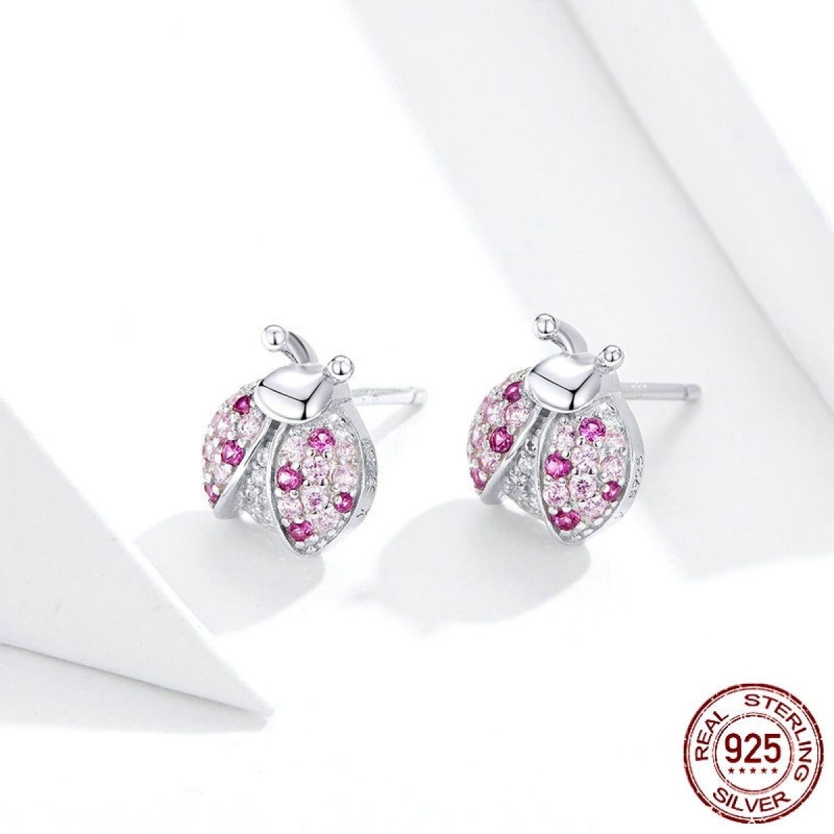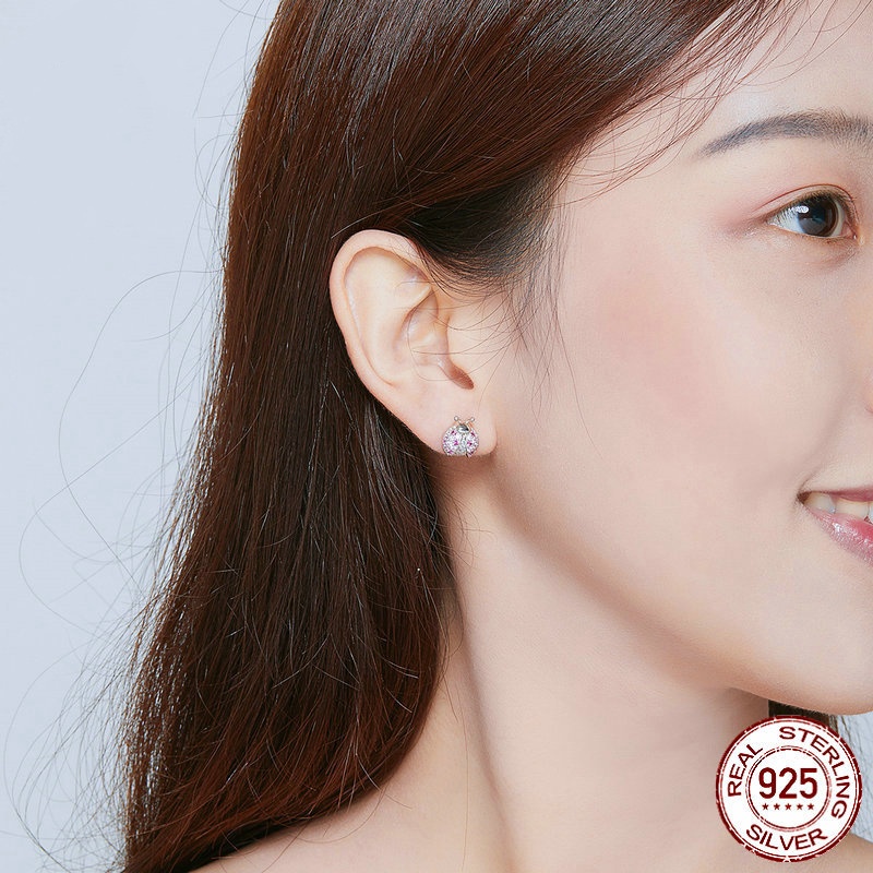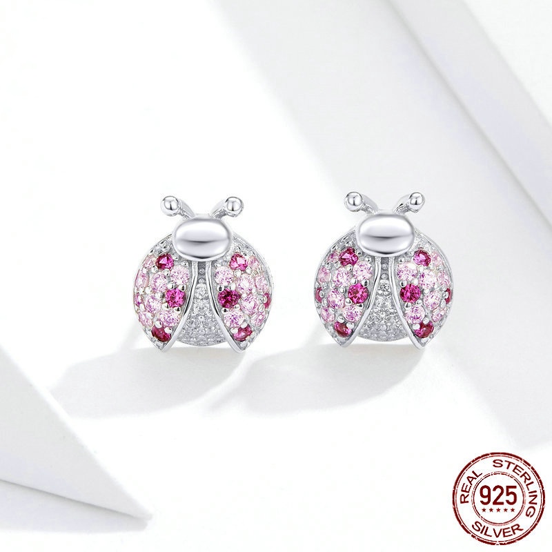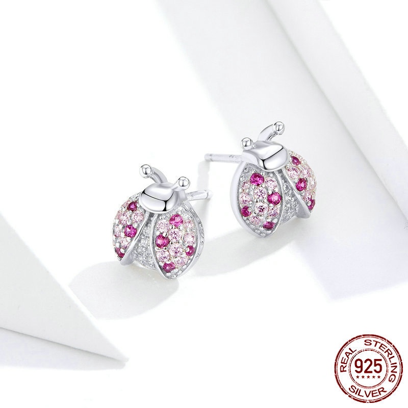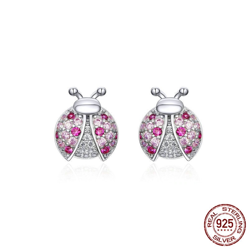 S925 LADYBIRD Earrings White Gold Plated Whole Body Silver