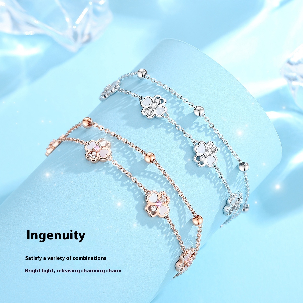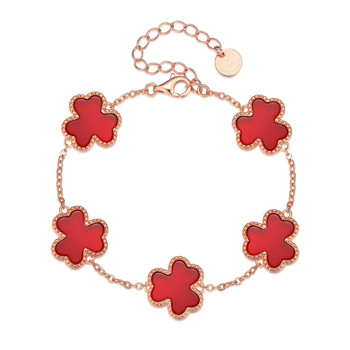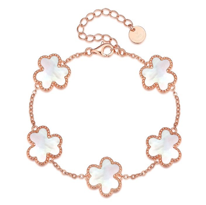 Color: lucky double-layer four-leaf clover bracelet-Rose, lucky double-layer four-leaf clover bracelet-White, S925 red agate Pig bag small Lucky Clover bracelet-Rose, s925 white shell Five-Flower meat small Lucky Clover bracelet-rose,