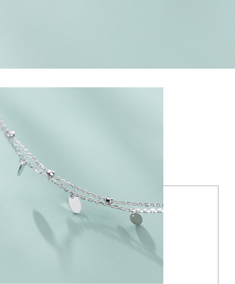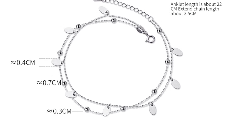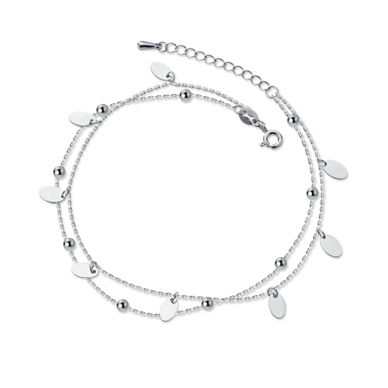 S925 Silver Double-layer Simplicity Light Bead Glossy Oval Anklet