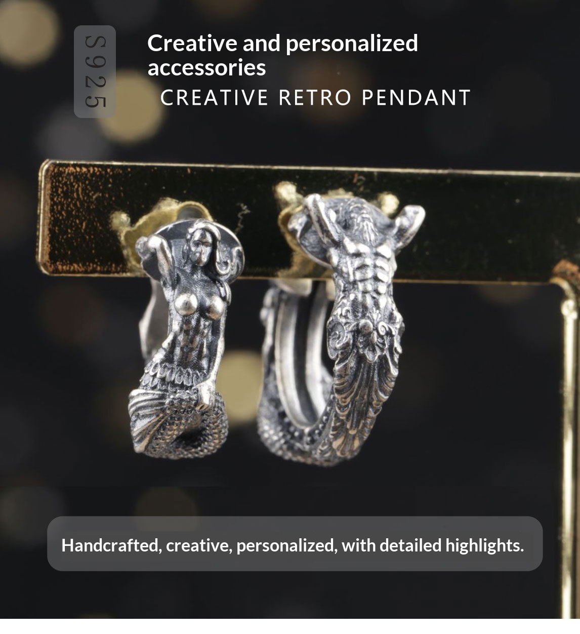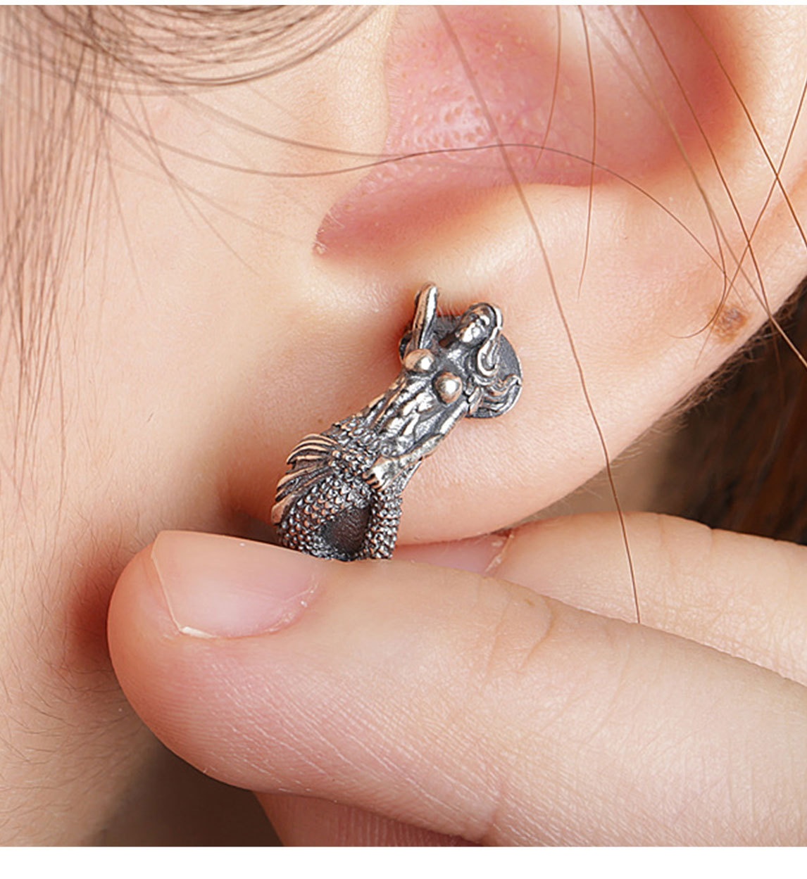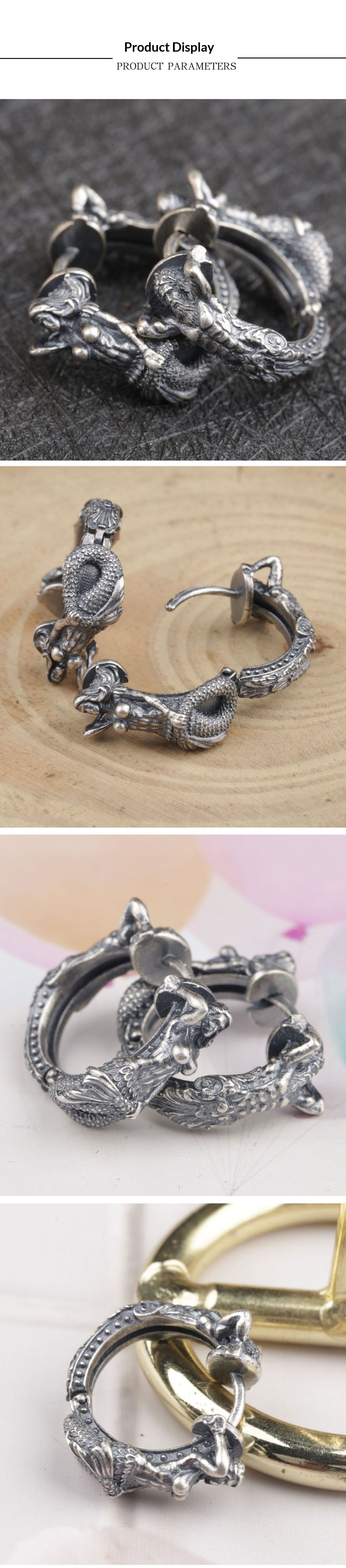 S925 Silver Earrings Poseidon Mermaid Earrings Niche Design Ear Cuffs