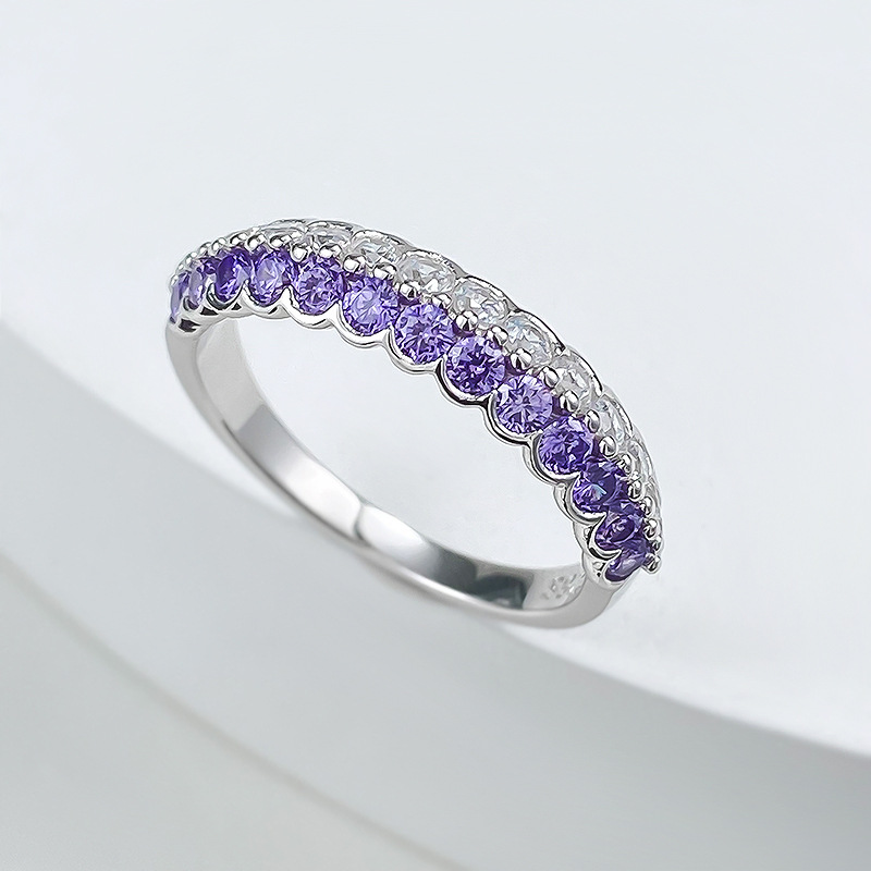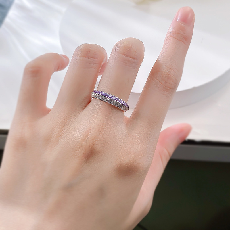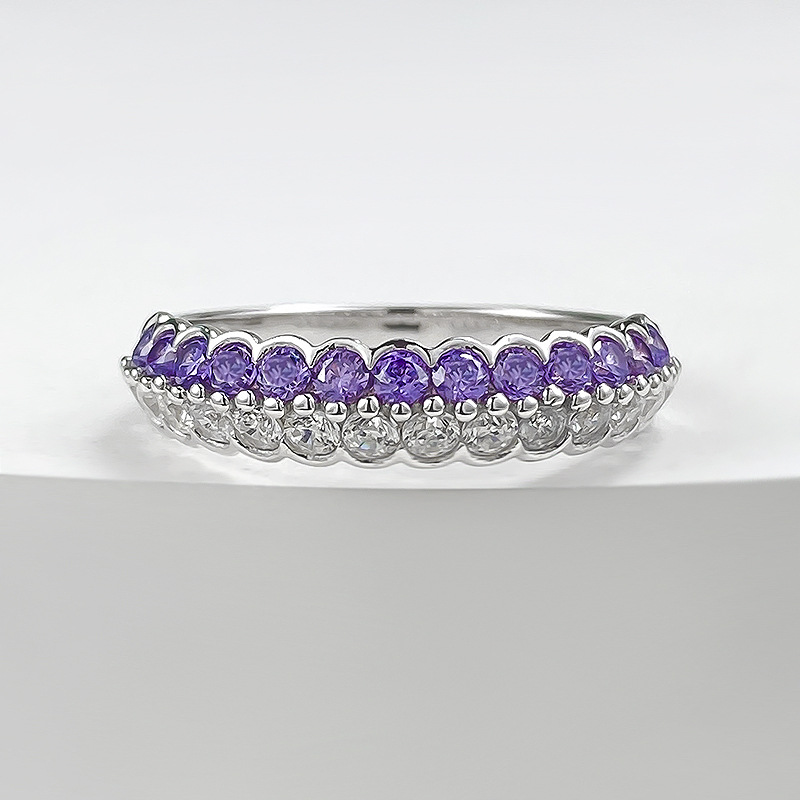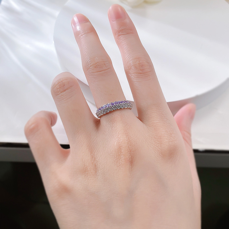 S925 Silver Fashion Ring With Purple And White Diamond Accents