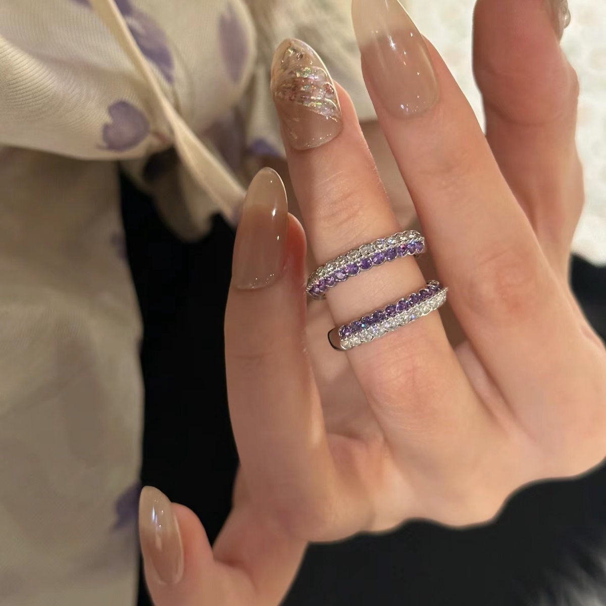 Color: R1129 Purple Diamond Row Ring, R1128 White Diamond Row Ring