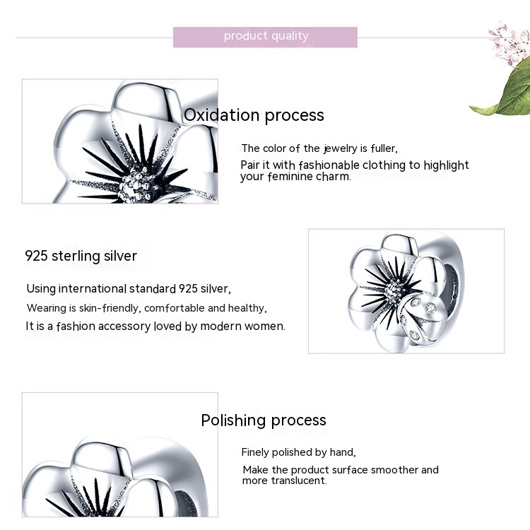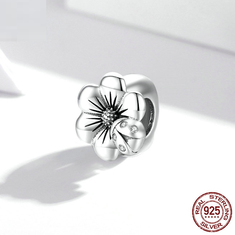 Name: simple flower silver silicone -- 925 silver bead