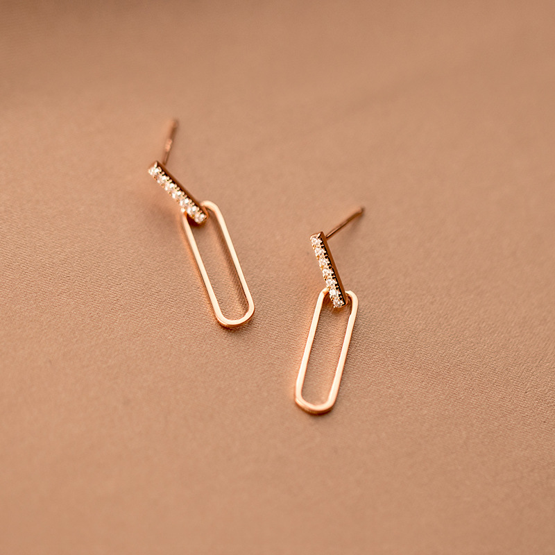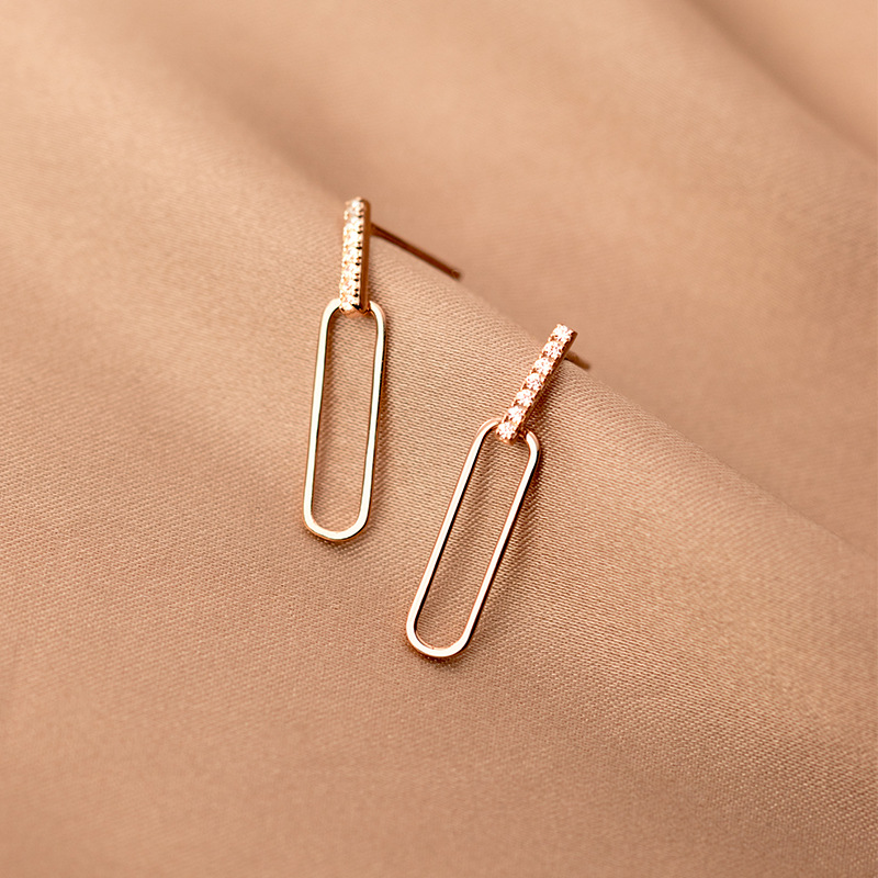S925 Silver Geometric Hollow Line Diamond Oval Earrings Women