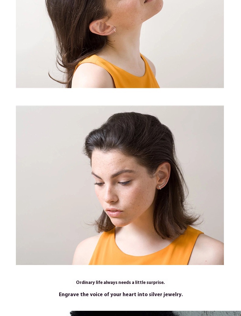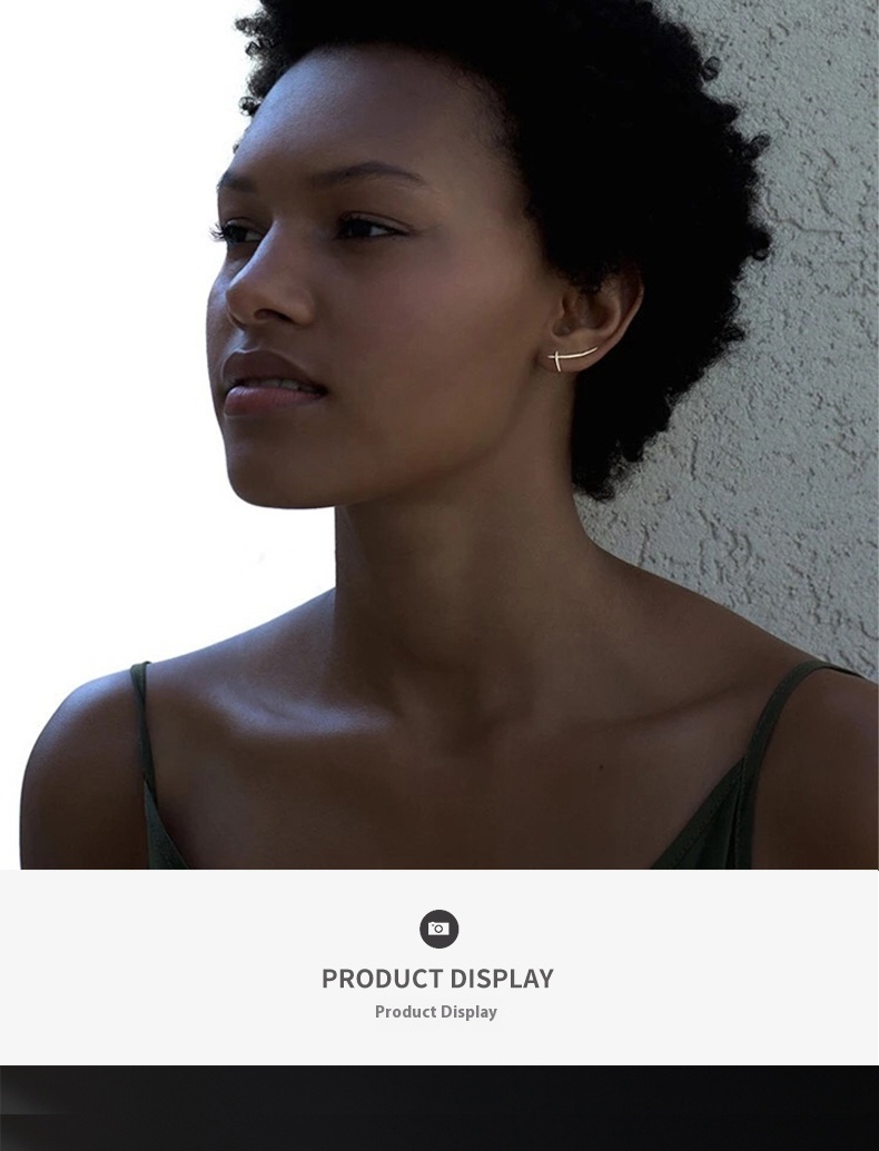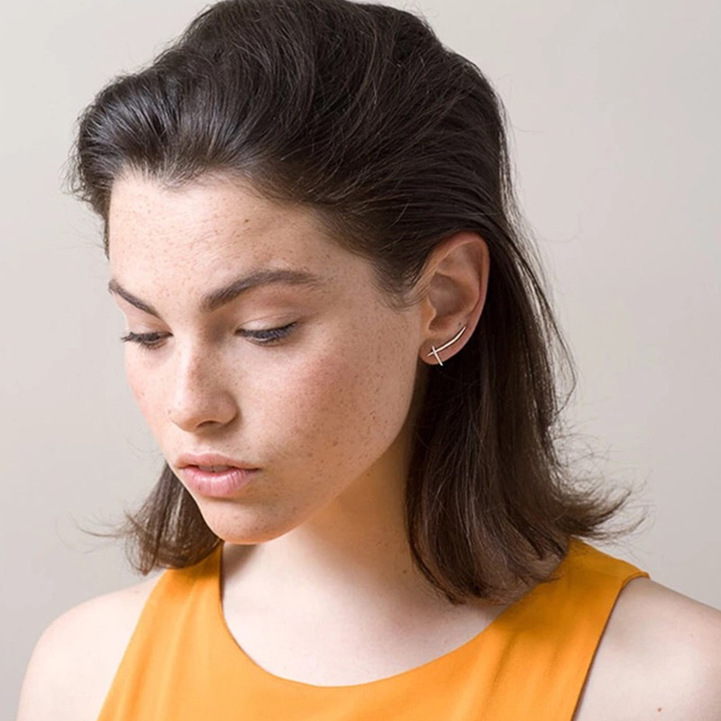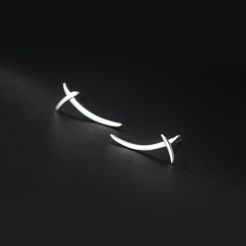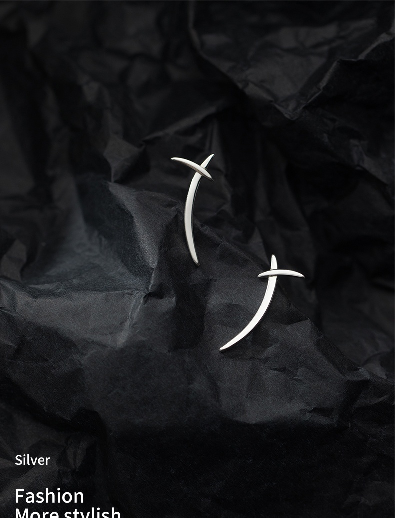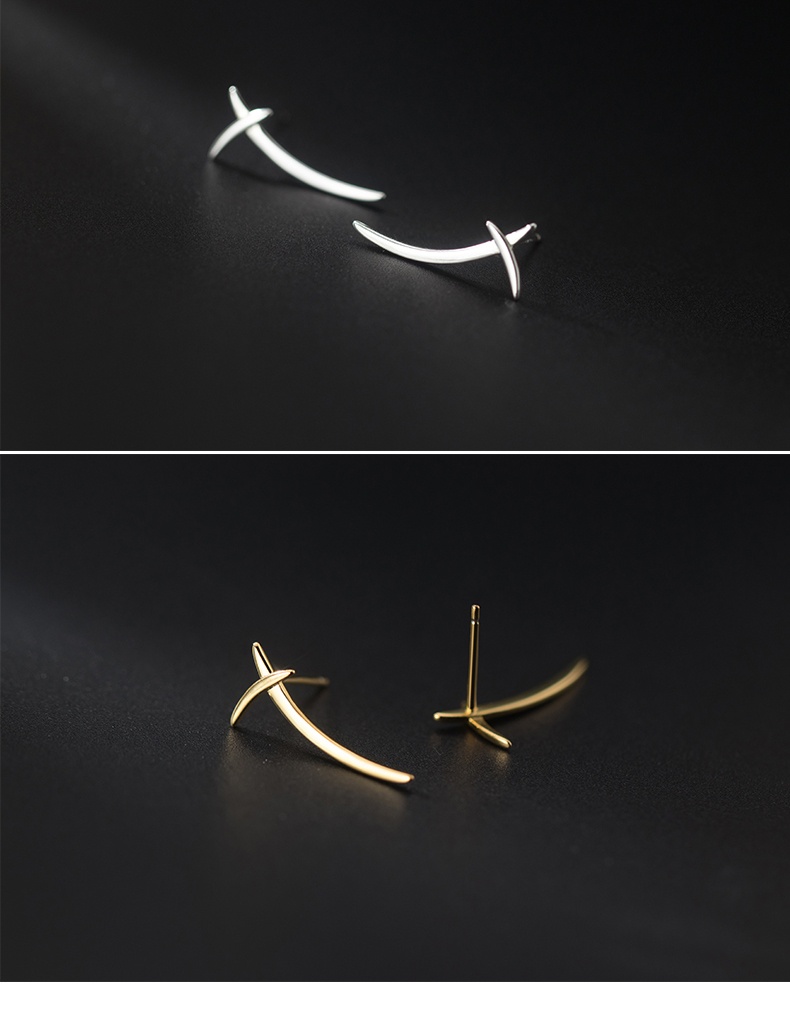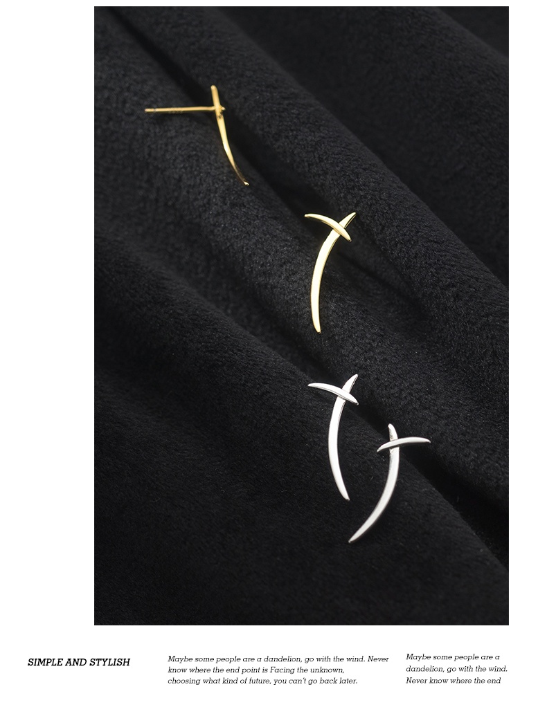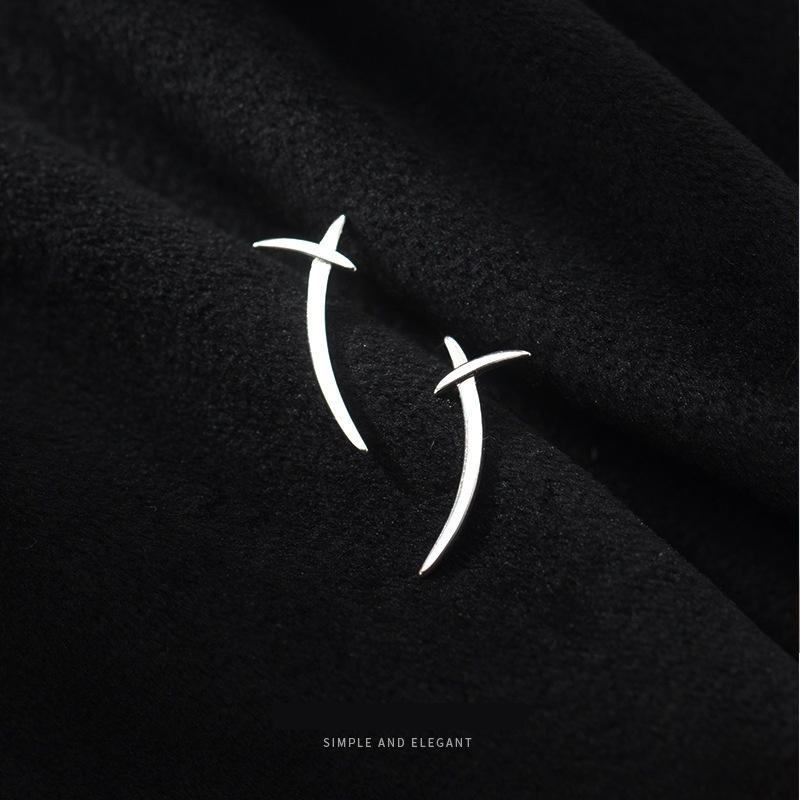 S925 Silver Korean Style Simple Cross Line Stud Earrings