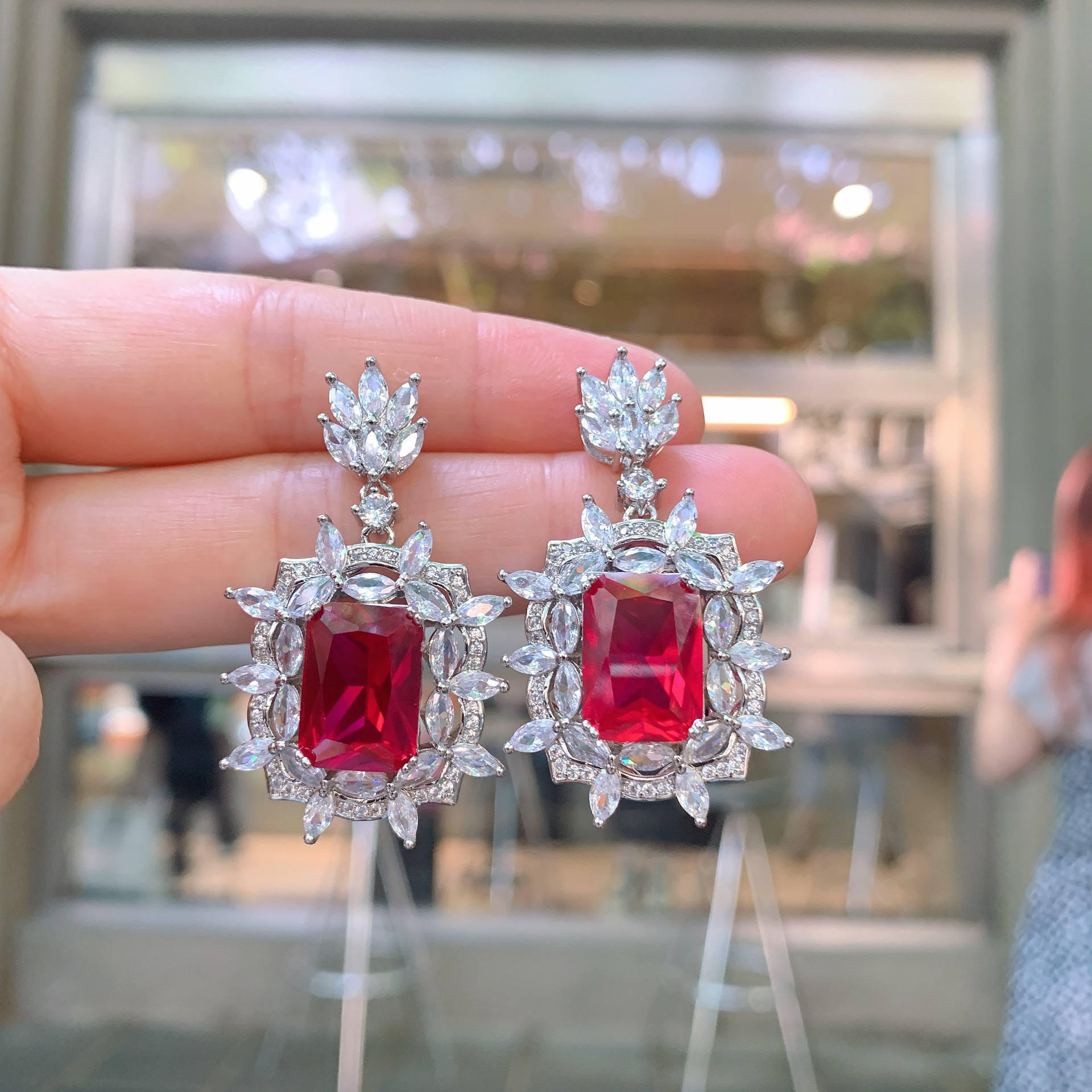 Color: ruby earrings, ruby pendant, ruby ring 6-8 adjustable