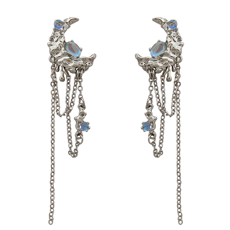 Product information:Color: S925 silver needle moon earrings pair Applicable people: female Material: alloy