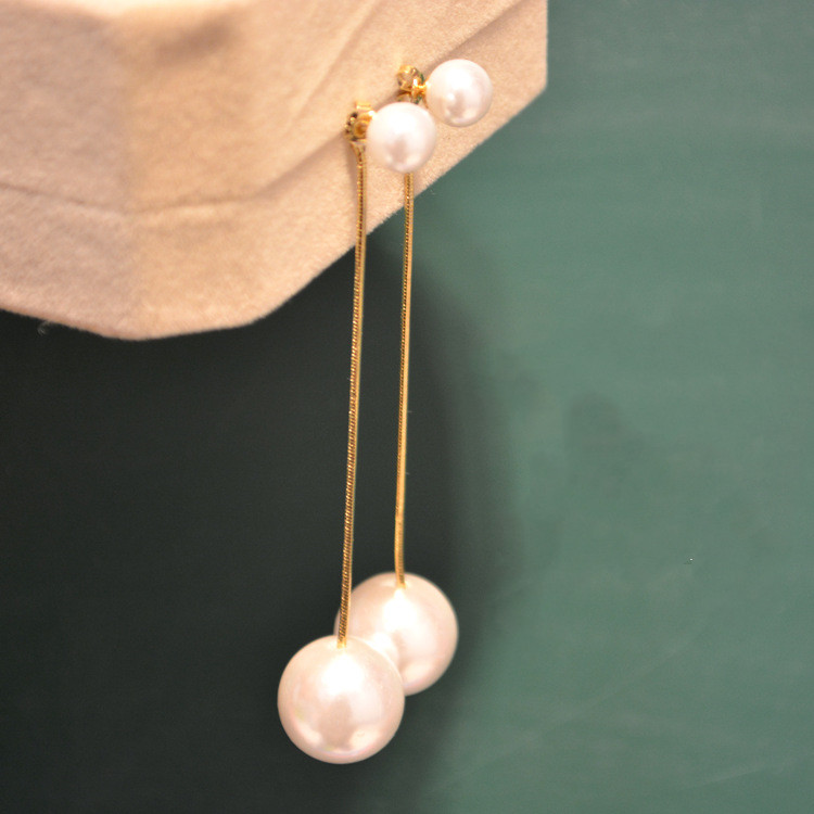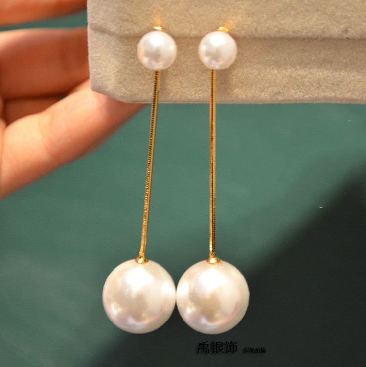 Material: imitation pearl+925 silver needleLong section: 8.5cmShort: 6.6cmLarge beads 1.6cm Small beads 0.8cm