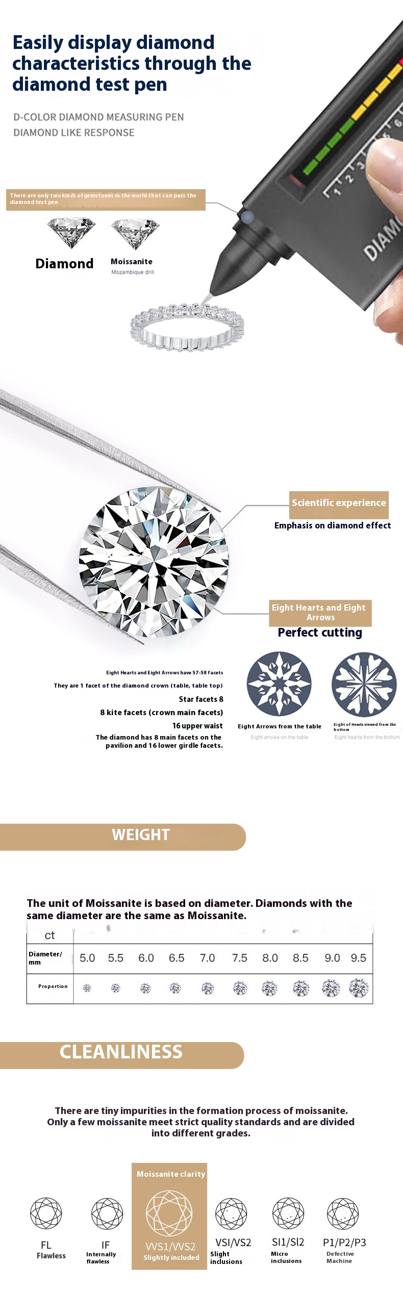Color: moissanite 2mm, moissanite 2mm (including GRA certificate)