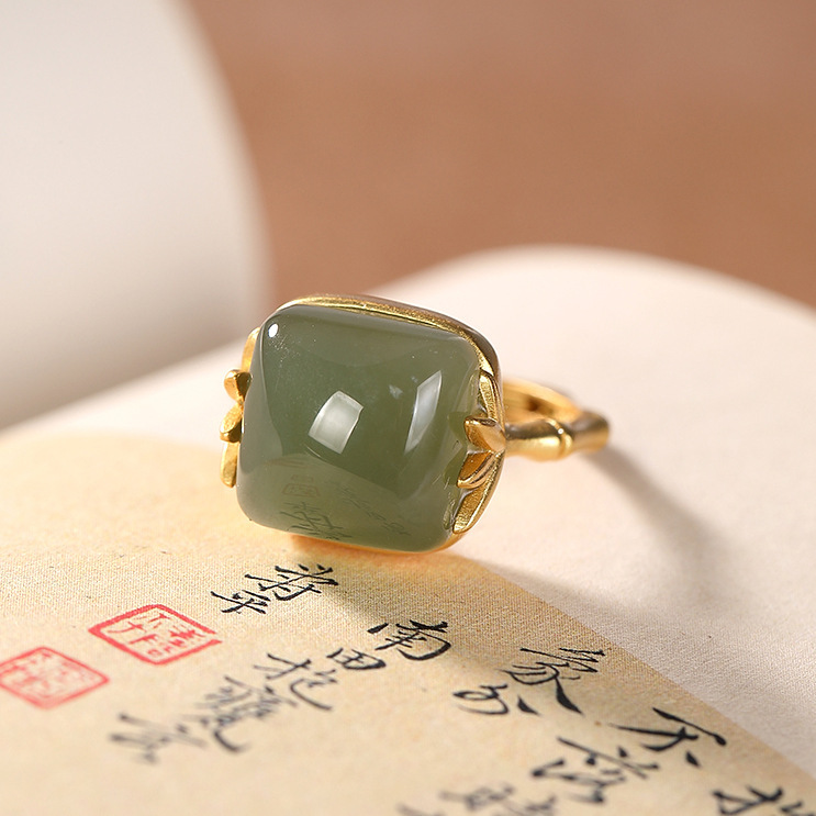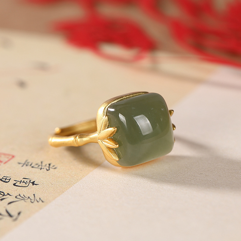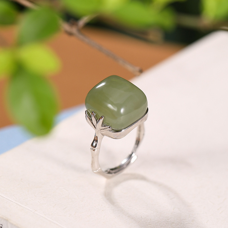 Color: zhuyeqing liquor jade ring, bamboo leaf white jade ring, silver zhuyeqing liquor color ring