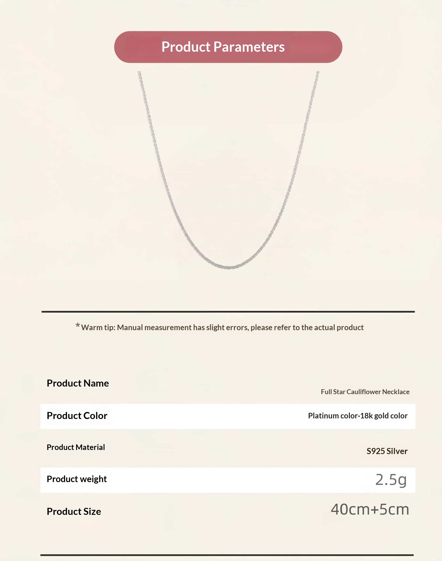Color: Cauliflower Chain – 18k Gold, Cauliflower Chain – Platinum