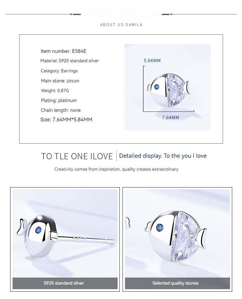 Color: e584e_sterling silver stud earrings (with glue earplugs)