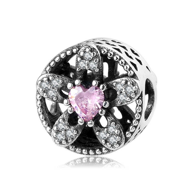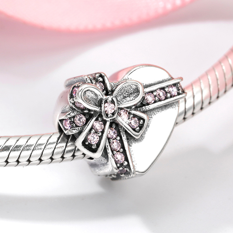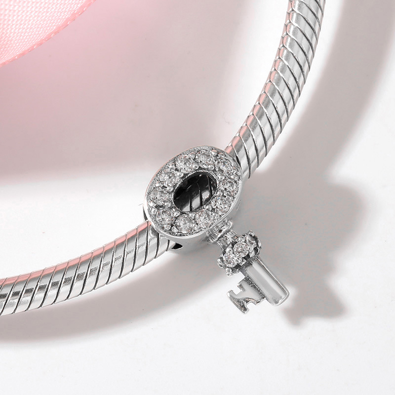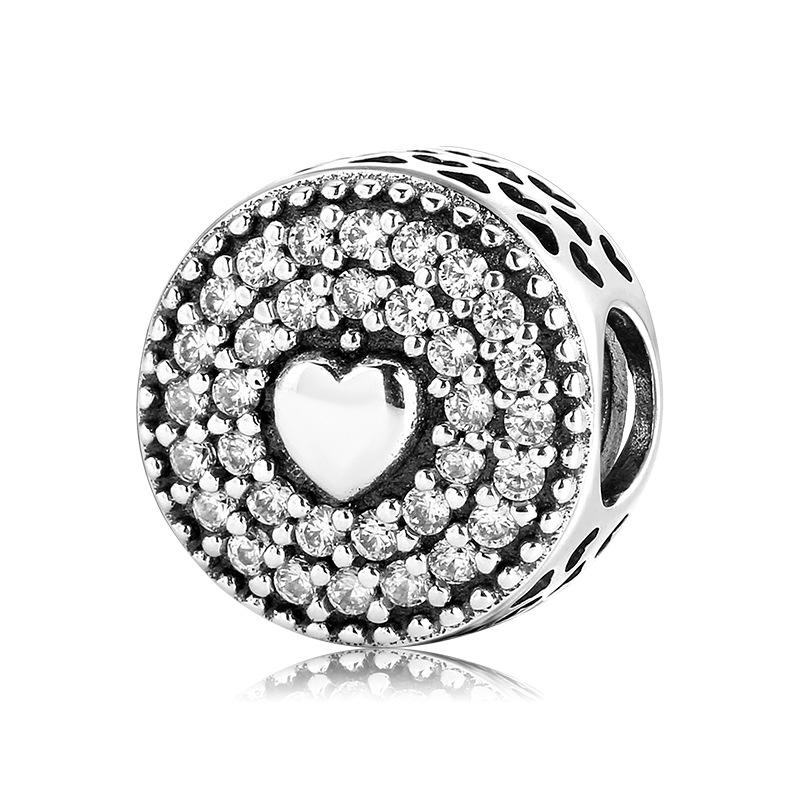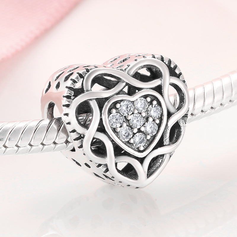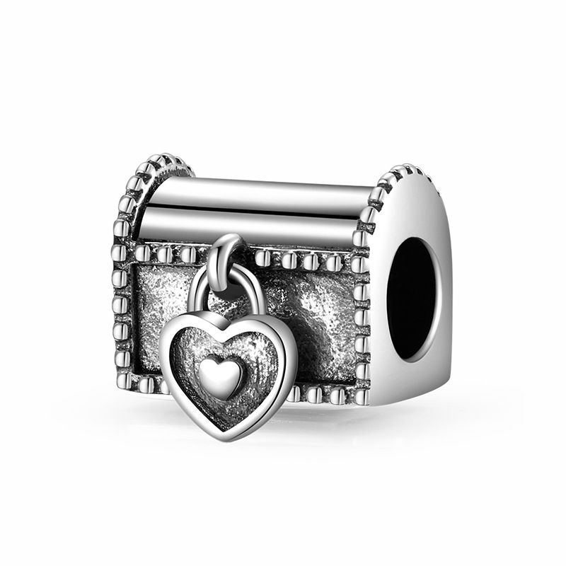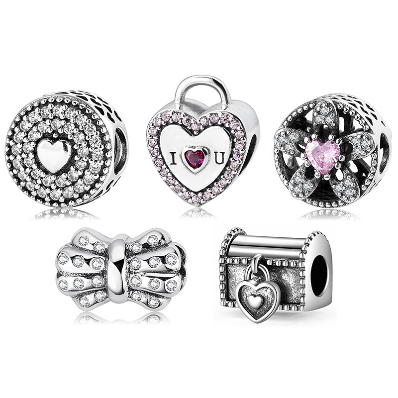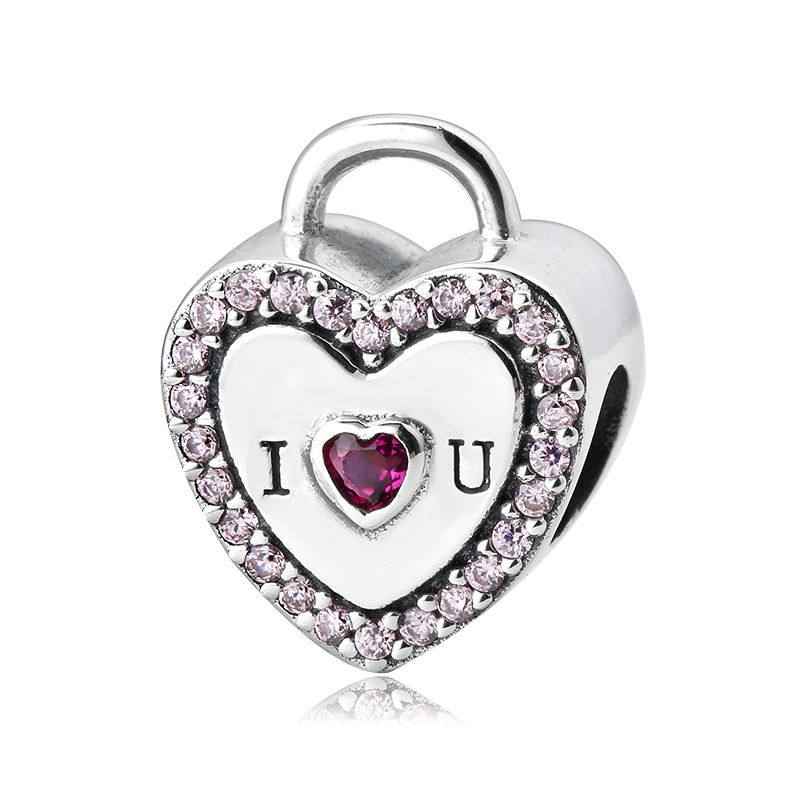 S925 Sterling Silver Beaded Pendant Valentine's Day Love Heart Lock Beads Bracelet Diy Accessories Loose Beads