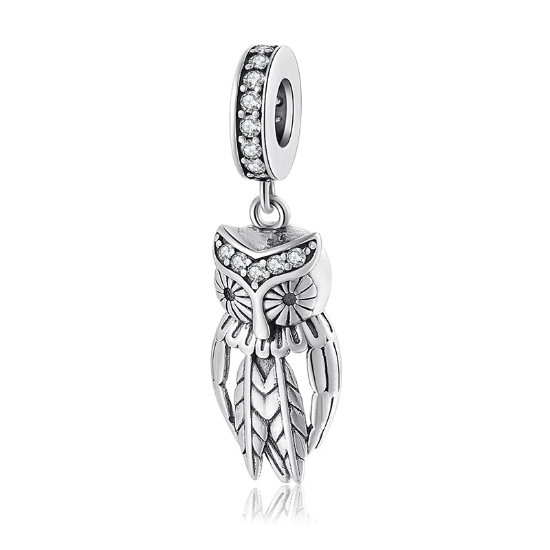 S925 Sterling Silver Beads Cute Animal Big Eye Owl DIY Bracelet Accessories Beaded Silver Jewelry
