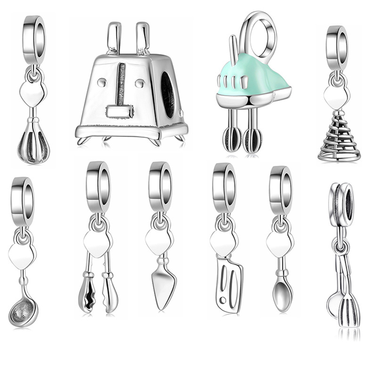 S925 Sterling Silver Beads Pendant Egg Beater Bakery Kitchen Utensils Bracelet Diy Accessories Loose Beads