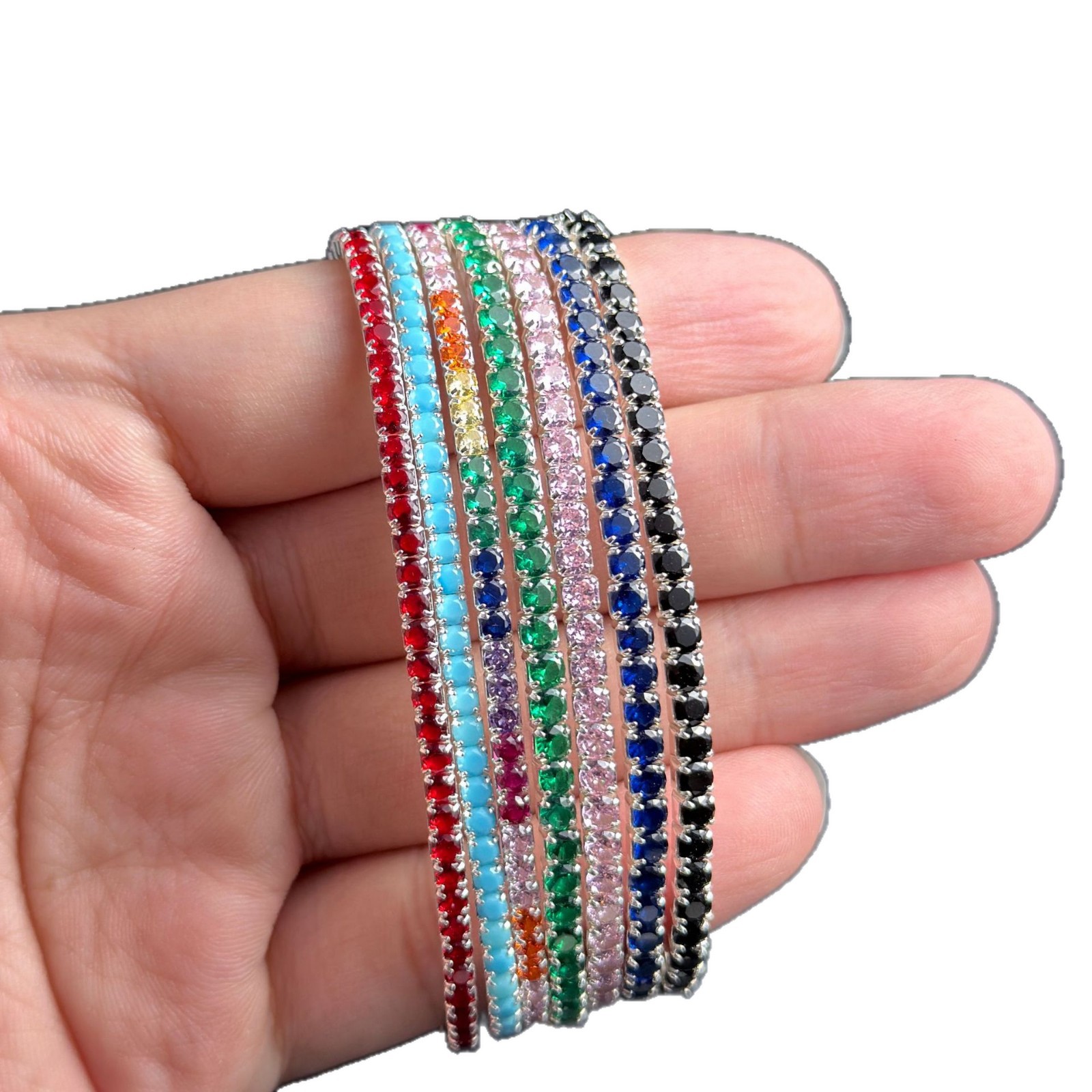 S925 Sterling Silver Bracelet, Colorful Zircon Elastic Bracelet For Women