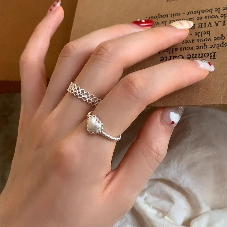 S925 Sterling Silver Brushed Love Heart Ring For Women, INS Korean Sweet Style, Versatile Niche Lace Edge Open Ring