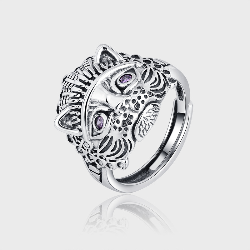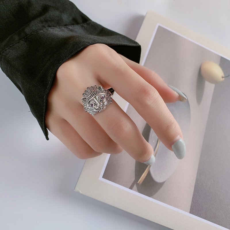 S925 Sterling Silver Chieftain Living Vintage Indian Cat Head Ring