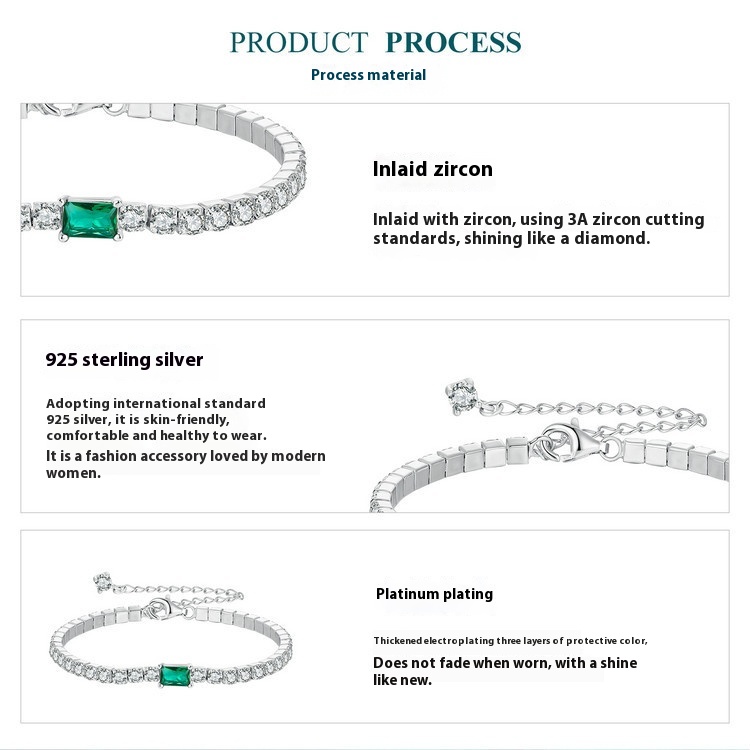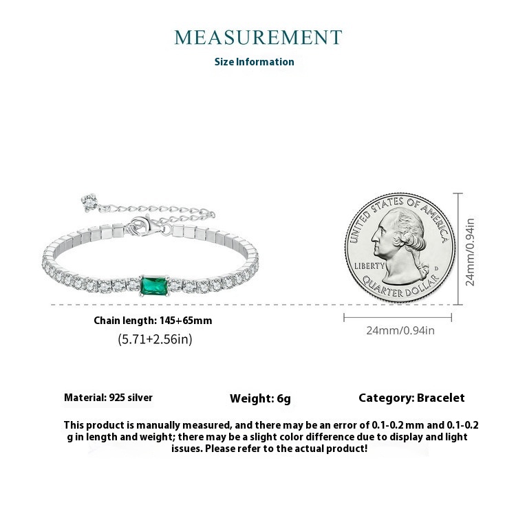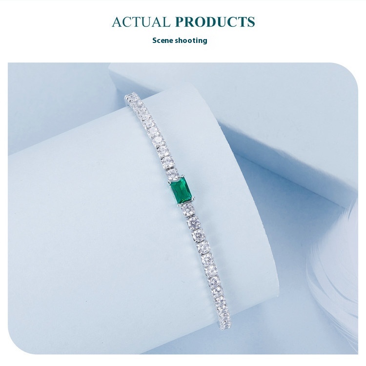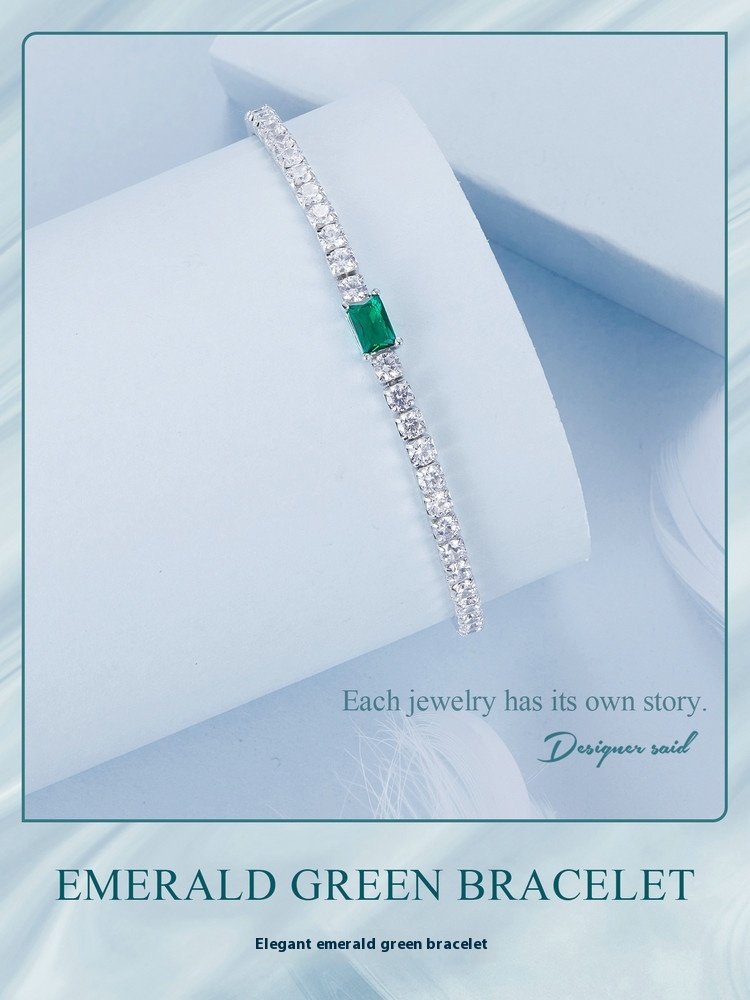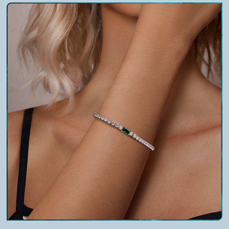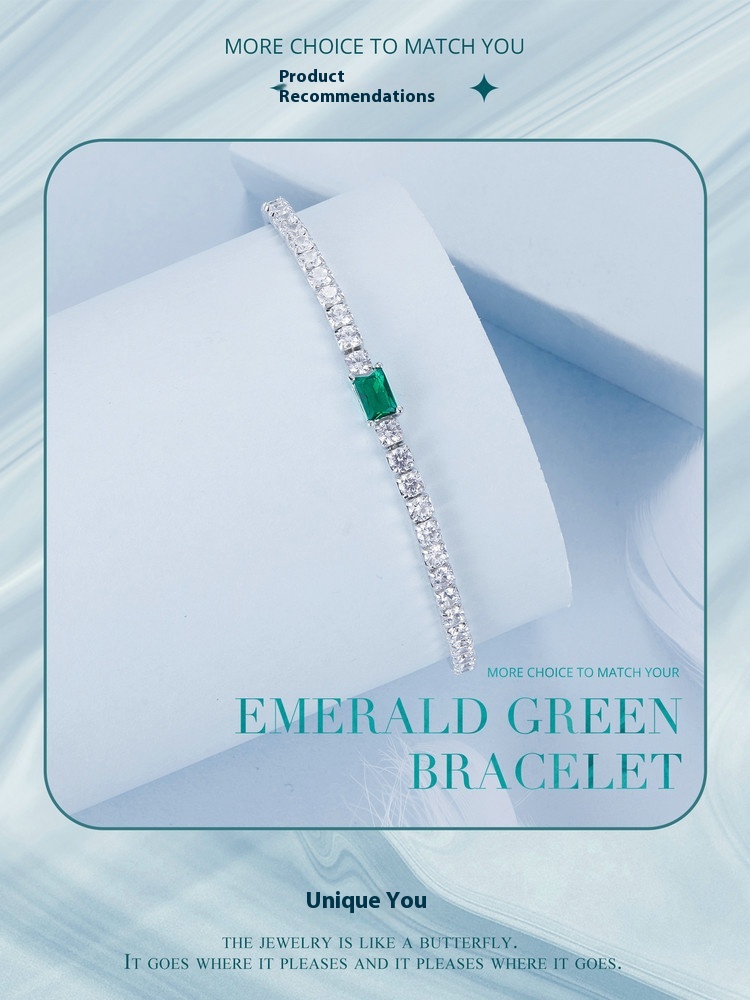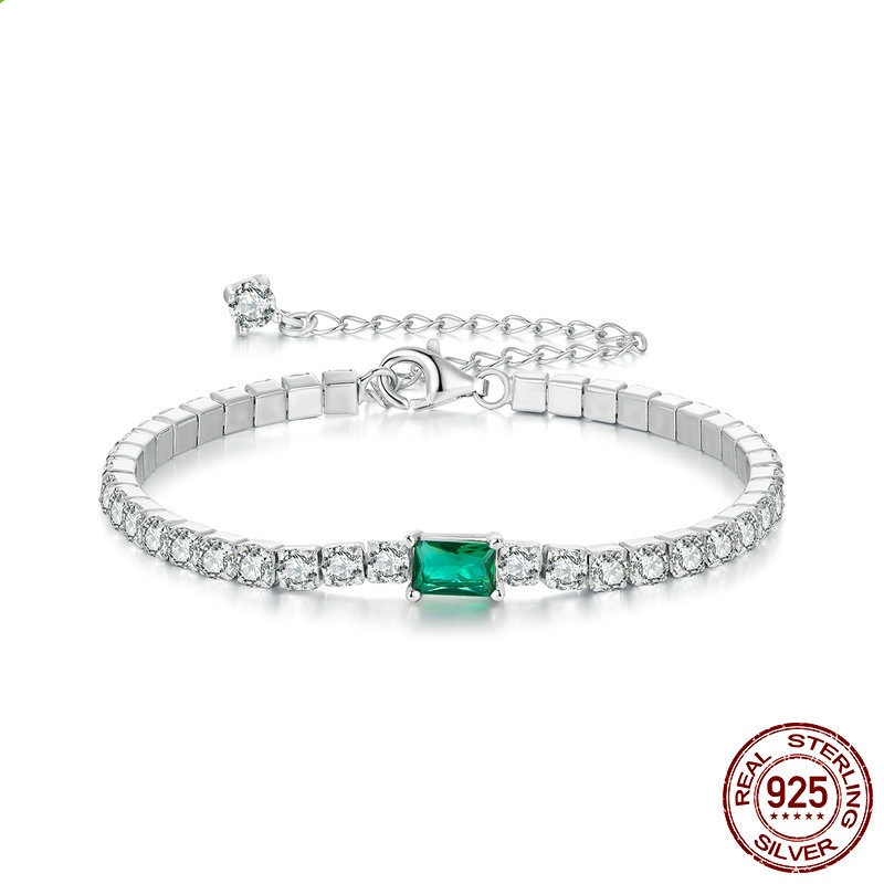 S925 Sterling Silver Classic Elegant Emerald Bracelet