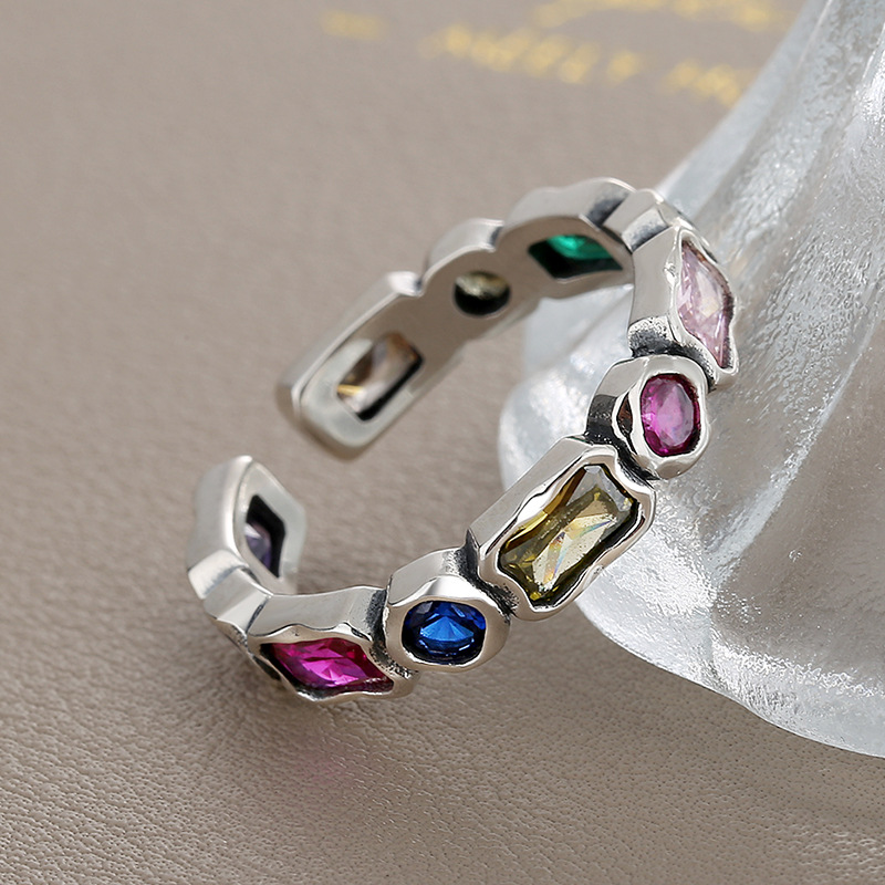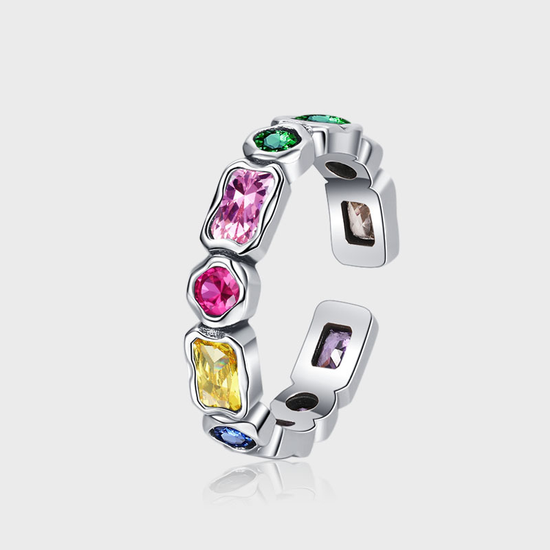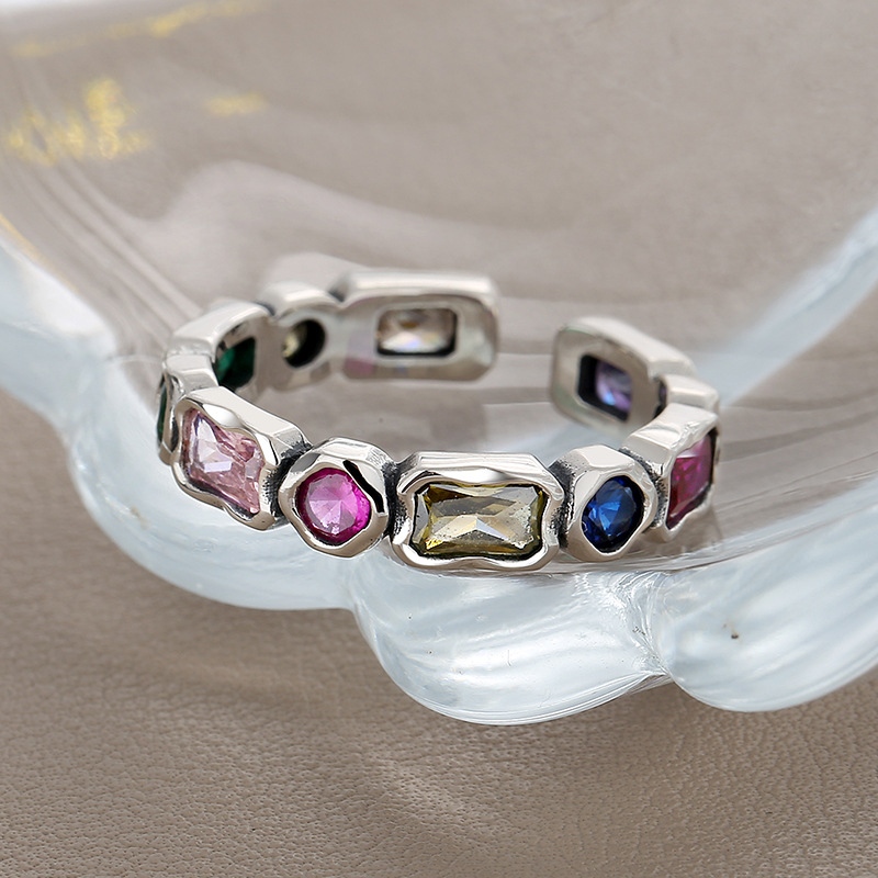 S925 Sterling Silver Color Matching Geometric Ring Ins