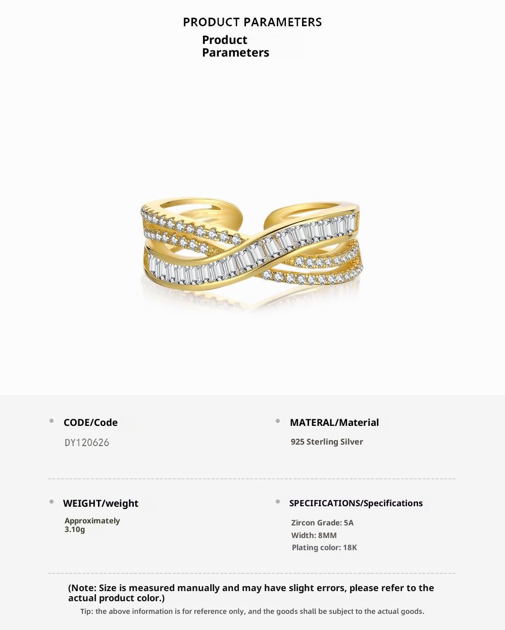 Color: Platinum DY120626-S-W-WH, gold DY120626-S-G-WH