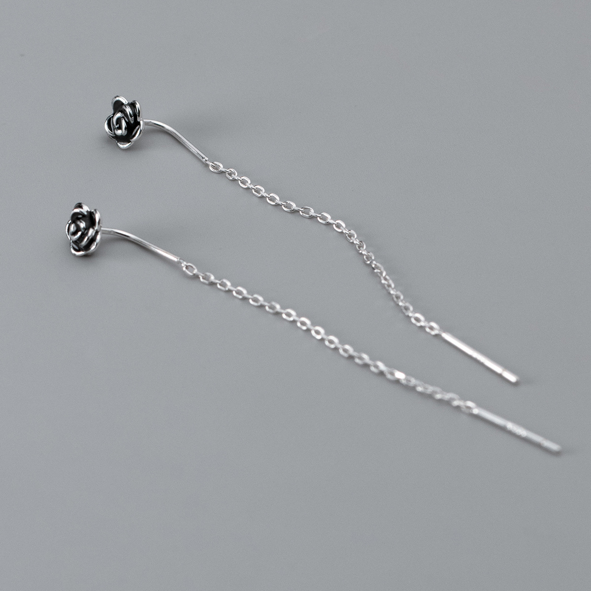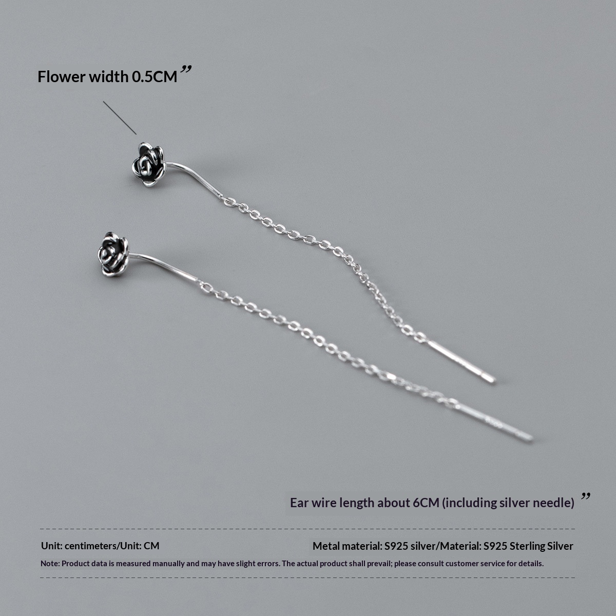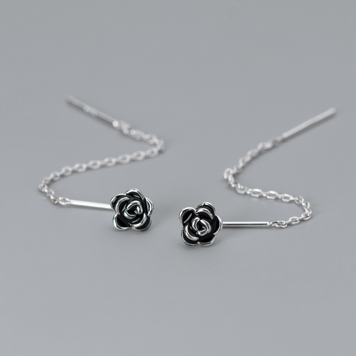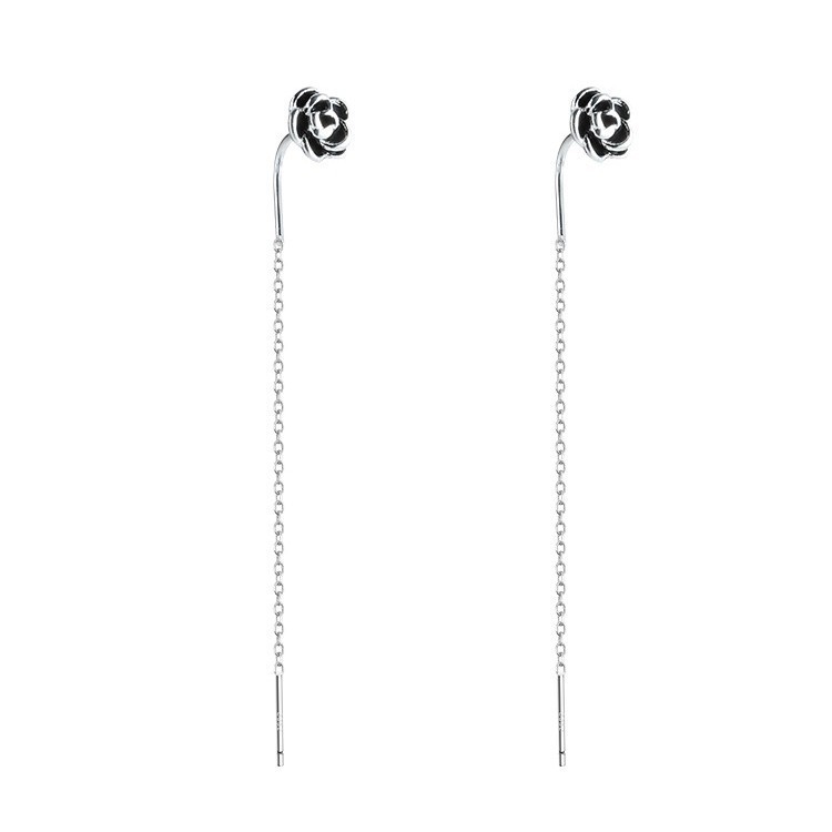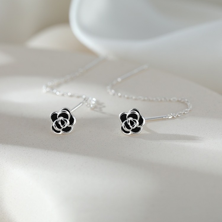 S925 Sterling Silver Delicate Epoxy Rose Drop Earrings