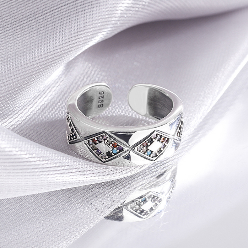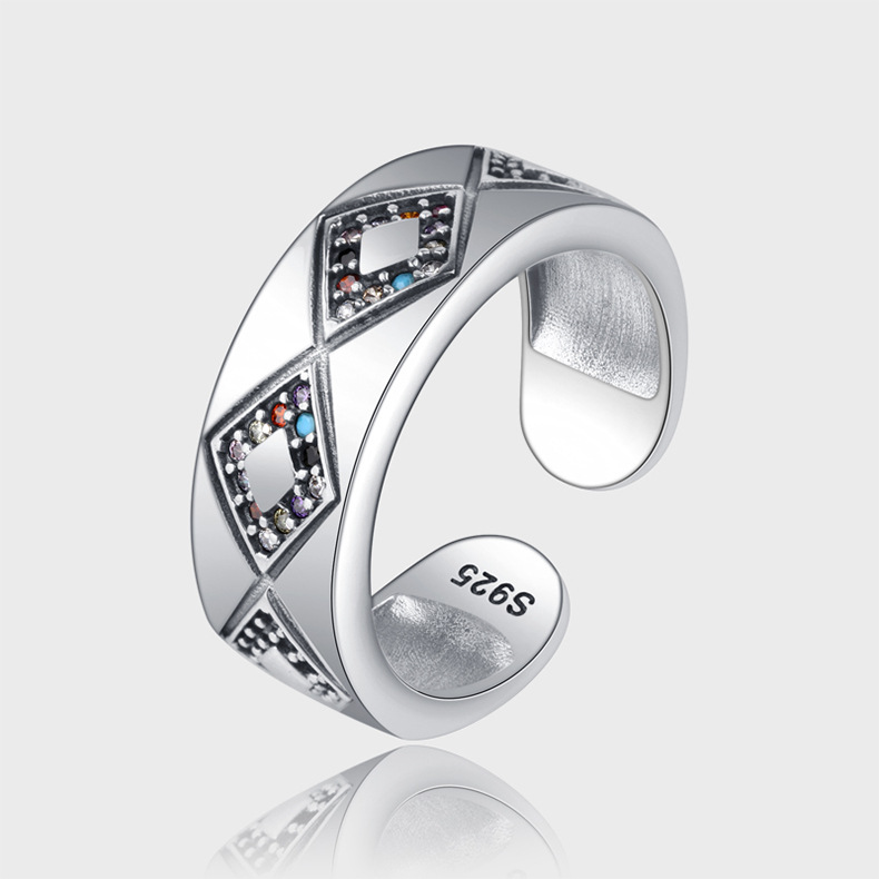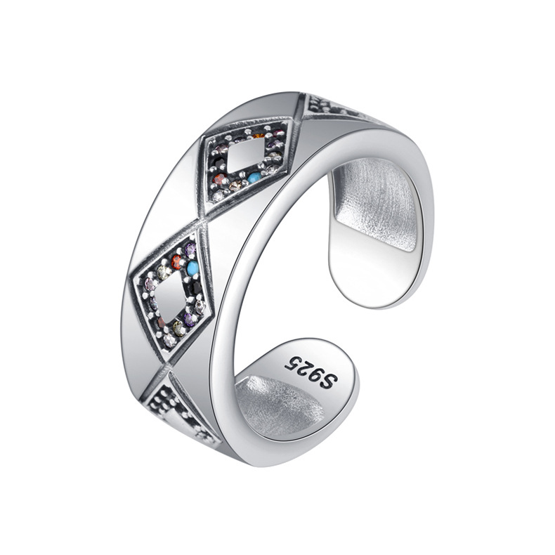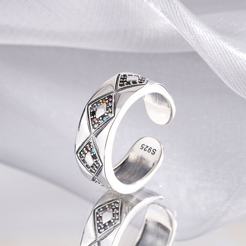 S925 Sterling Silver Diamond Multi Color Zircon Angel Eye Ring