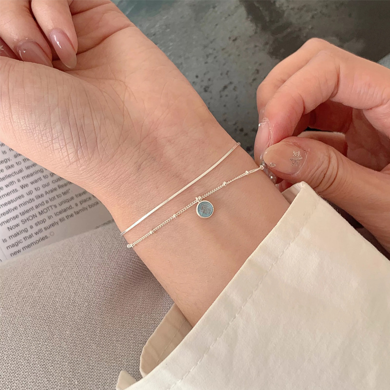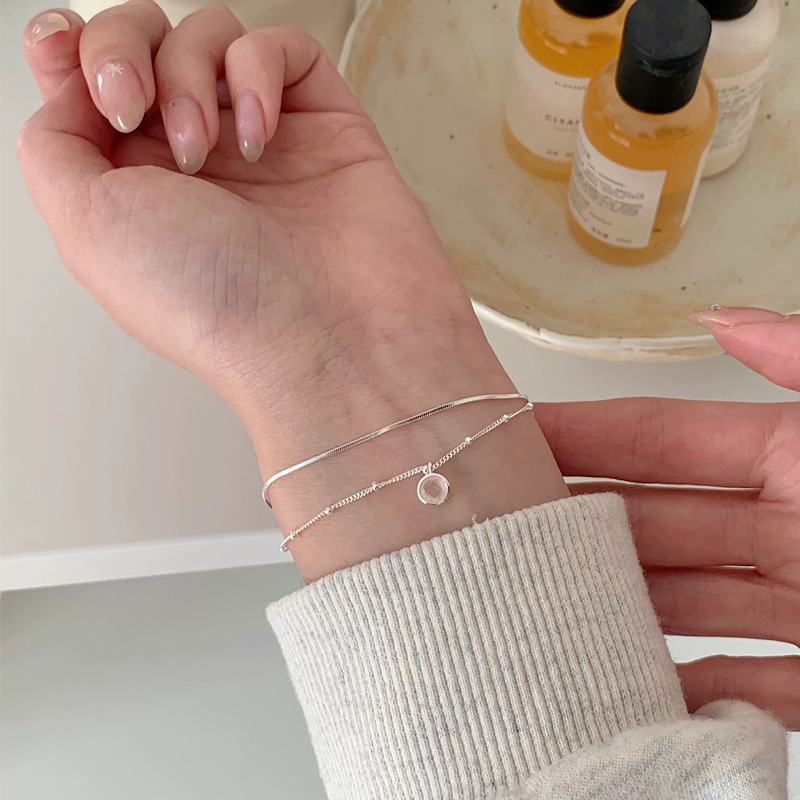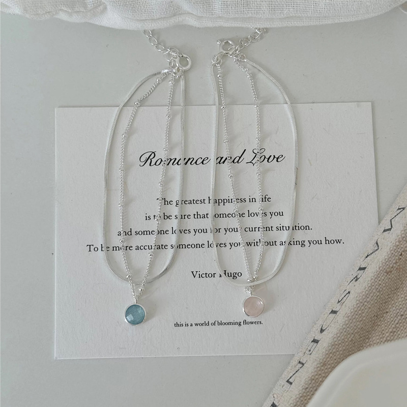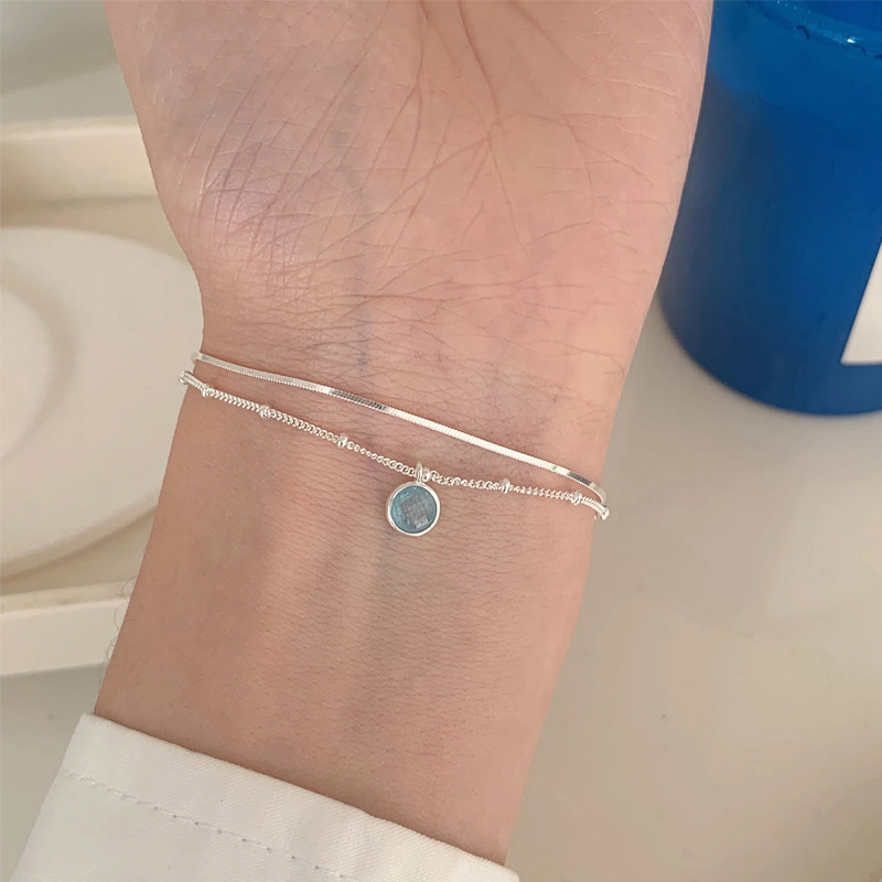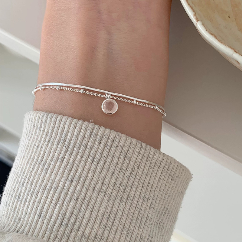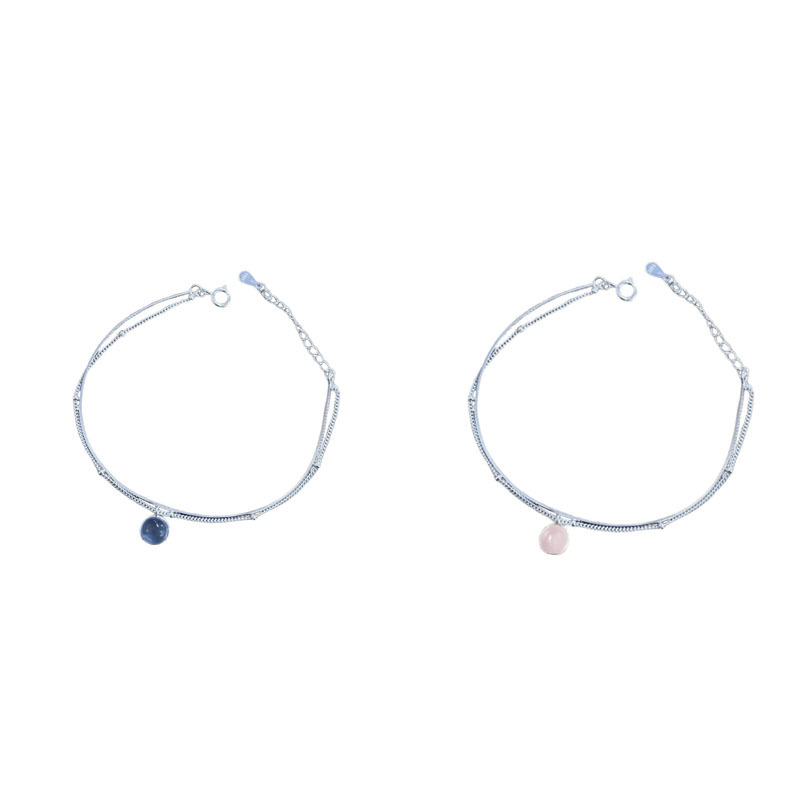 Color: Natural Aquamarine Bracelet—Silver, Natural Pink Chalcedony Bracelet—Silver