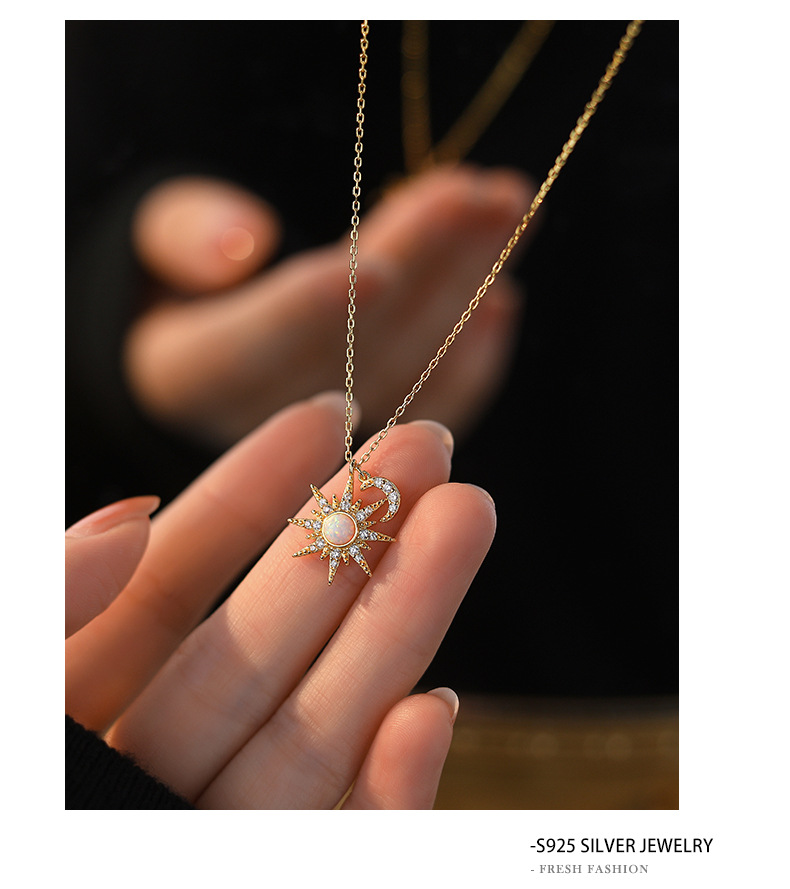 Color: white gold color opal stone necklace, yellow gold opal stone necklace
