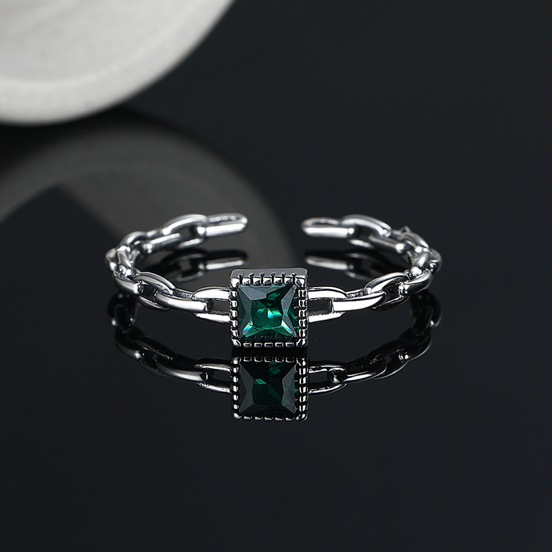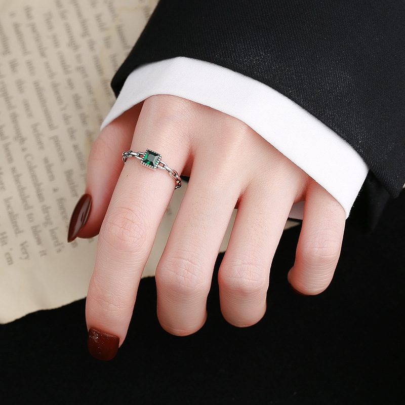 S925 Sterling Silver Emerald Zircon Chain Ring