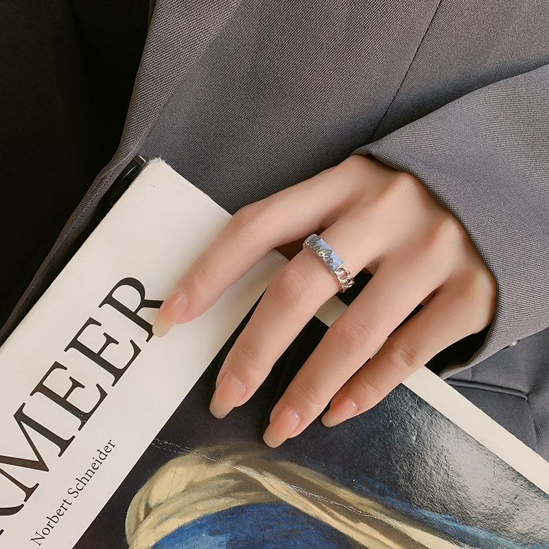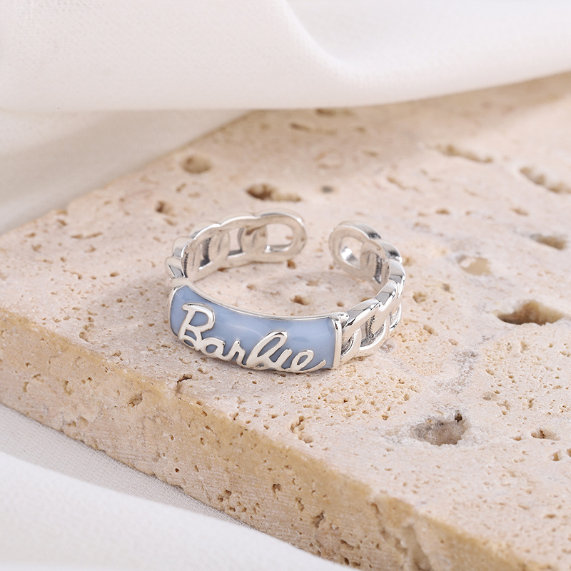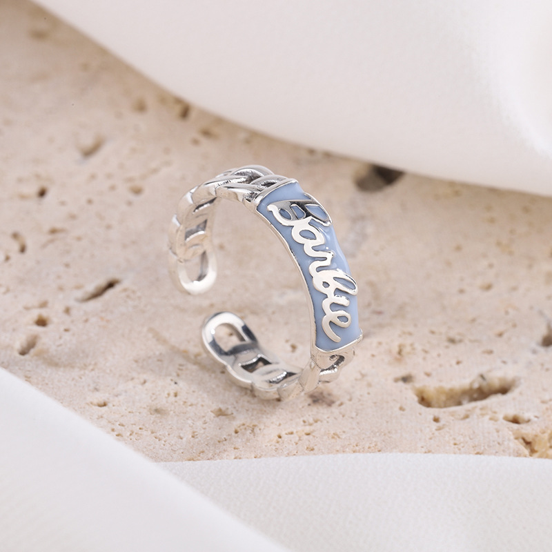S925 Sterling Silver Enamel Drop Glue English Chain Ring