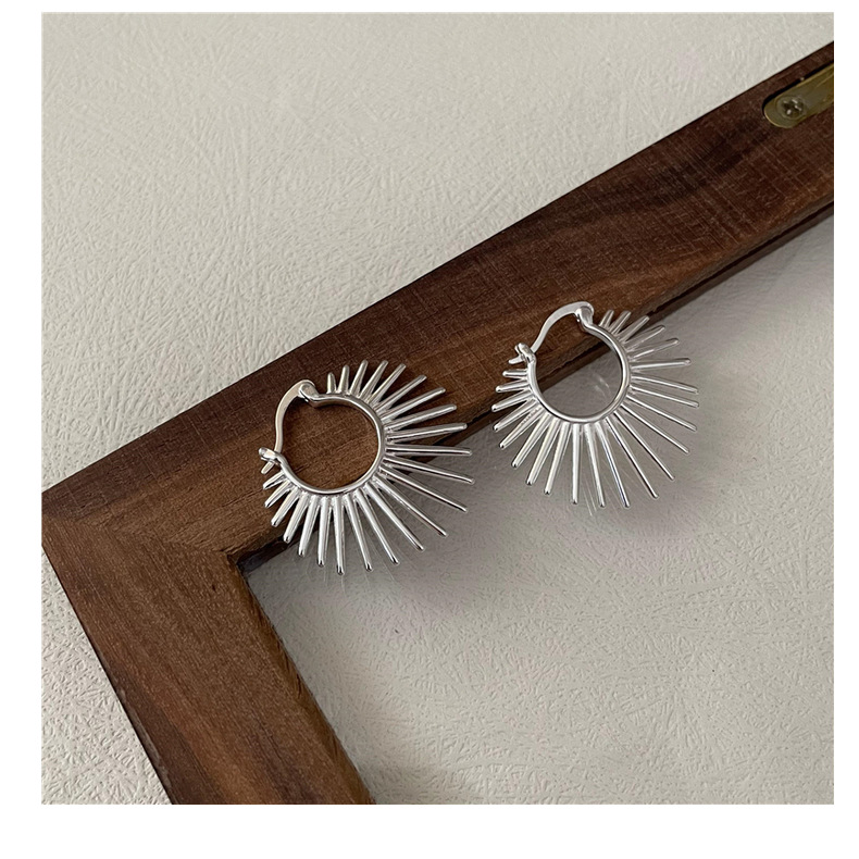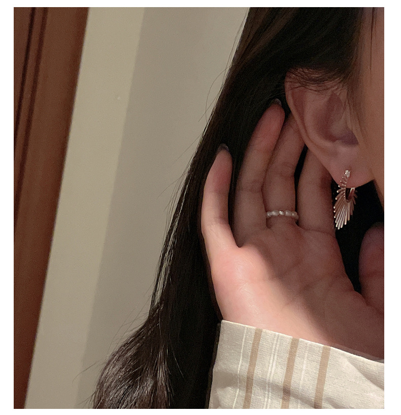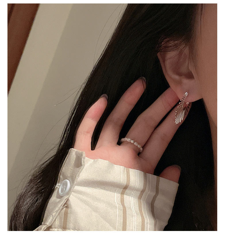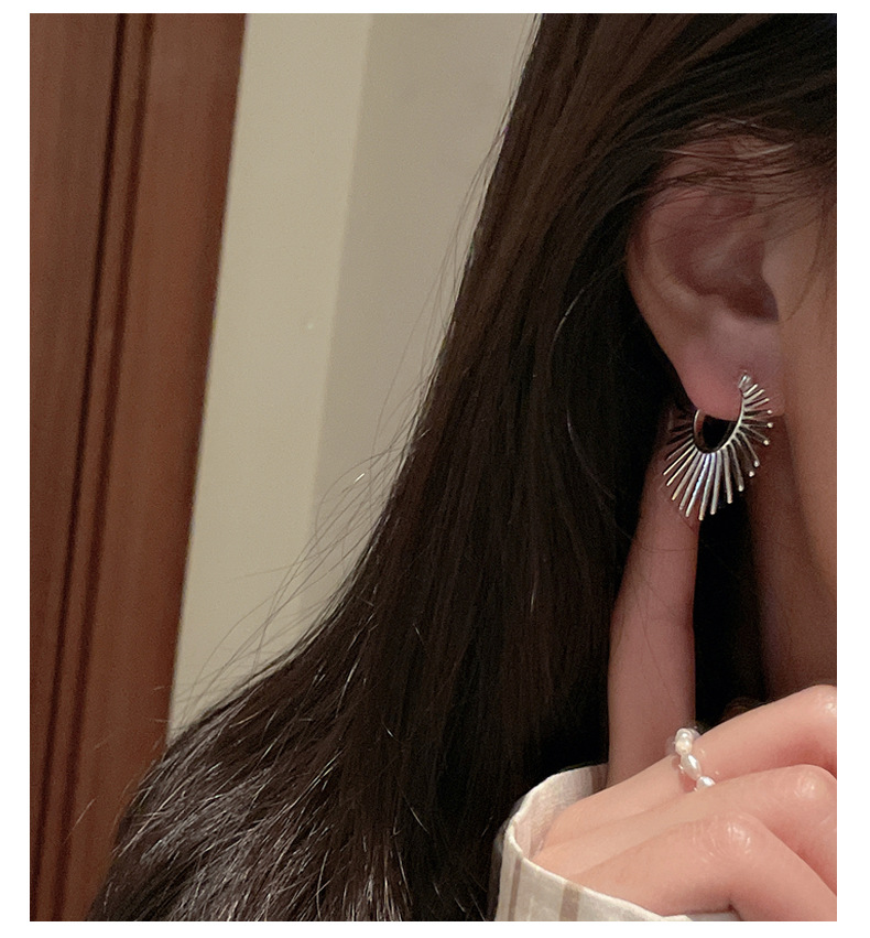 S925 Sterling Silver Fashionable Geometric Layered Fan-Shaped Ear Clips