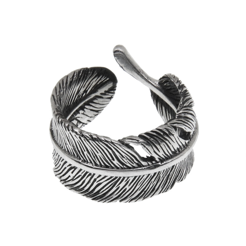 S925 Sterling Silver Feather Ring Creative Personality