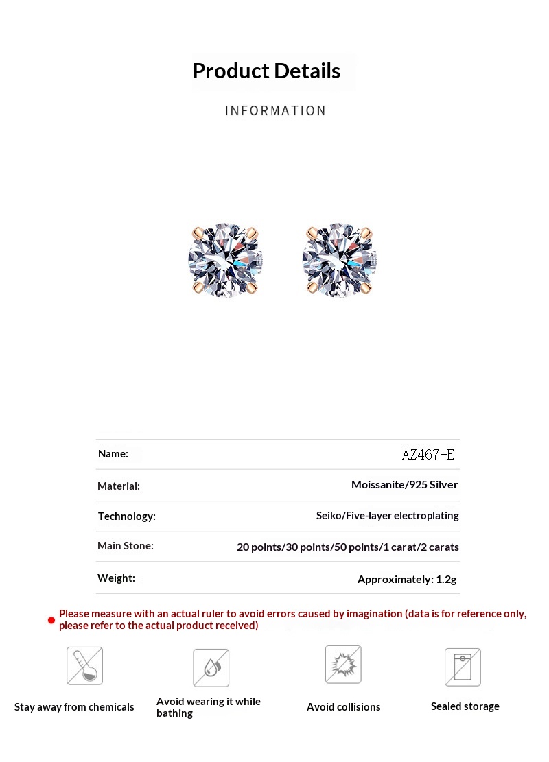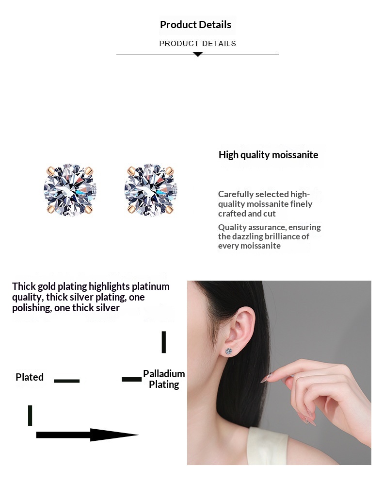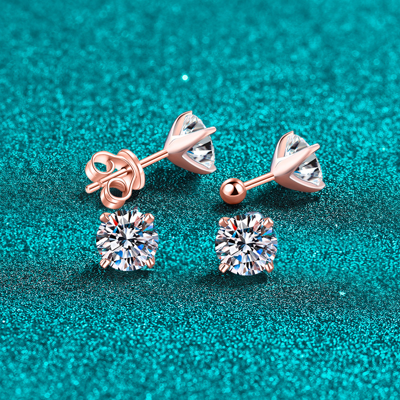 Color: Champagne Gold 40pt/Pair Moissanite (20pt per stone), Champagne Gold 60pt/Pair Moissanite (30pt per stone), Champagne Gold 1ct/Pair (50pt per stone), Champagne Gold 2ct/Pair Moissanite (1ct per stone), Champagne Gold 4ct/Pair Moissanite (2ct per stone), Champagne Gold 5mm Zircon, Champagne Gold 6.5mm Zircon, Champagne Gold 8mm Zircon