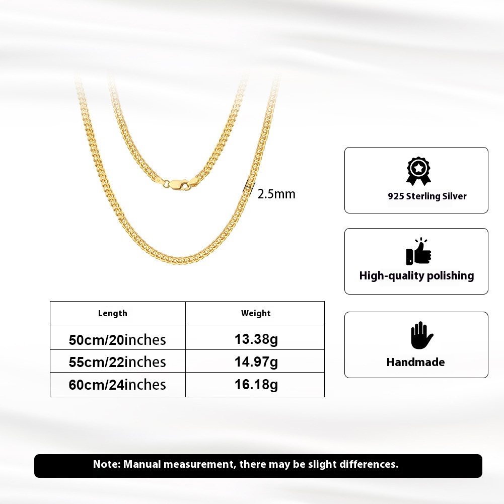 Color: 18k gold, thick straps 2.5MM, total length including buckle 50CM, about weight: 13. 38G, 18K gold, thick straps 2. 5mm, total length including buckle 55CM, about weight: 14. 97G, 18K electric gold, 2 thick chain. 5mm, total length including buckle 60CM, approximate weight: 16. 18G, electric platinum, thick straps 2.5MM, total length including buckle 50CM, about weight: 13. 38G, electric platinum, thick straps 2. 5mm, total length including buckle 55CM, approximate weight: 14. 97G, electric platinum, thick straps 2. 5mm, total length including buckle 60CM, approximate weight: 16. 18G