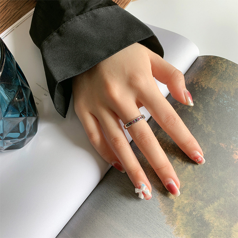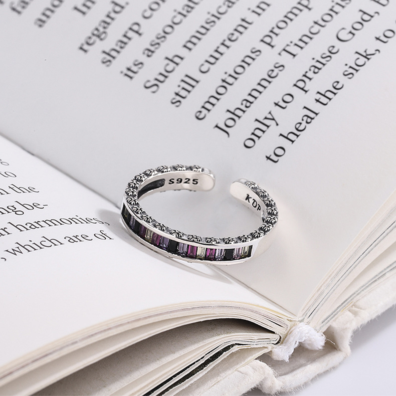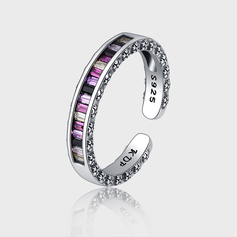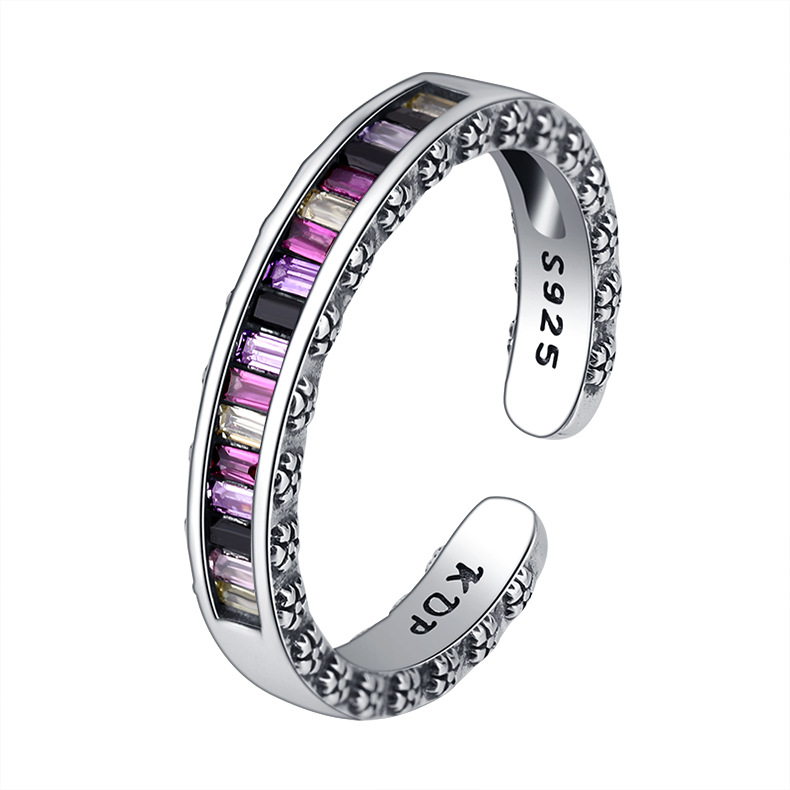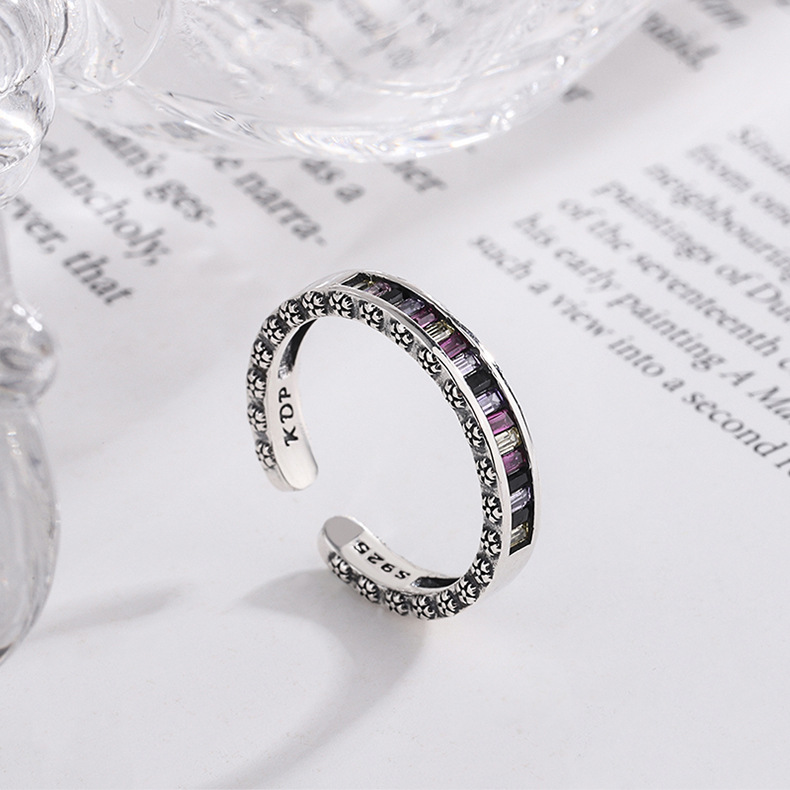 S925 Sterling Silver Heavy Industry Rainbow Zircon Ring Girl