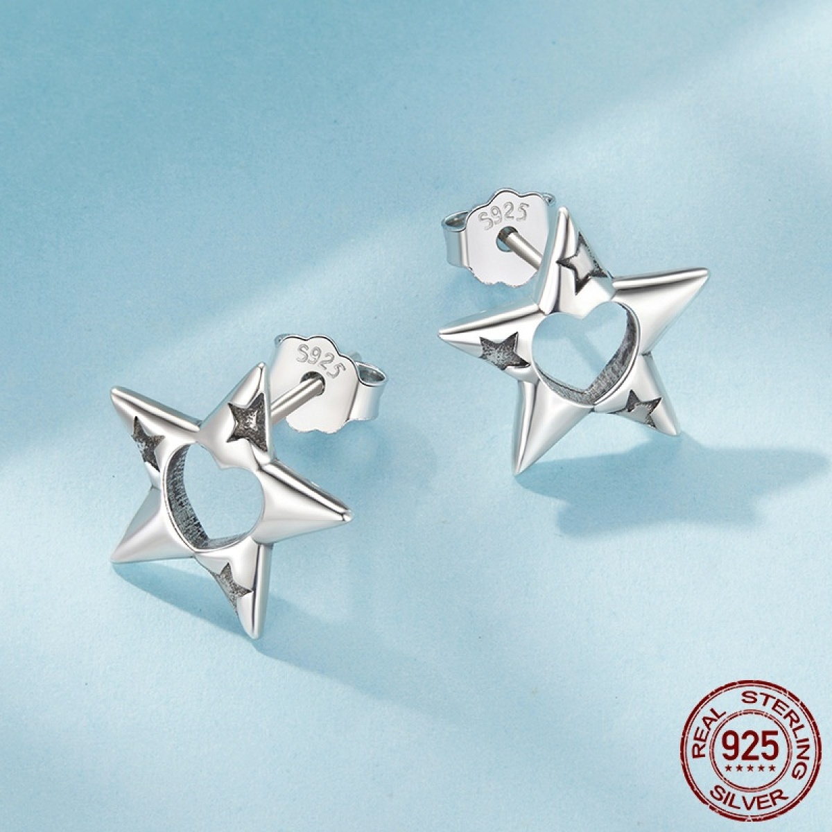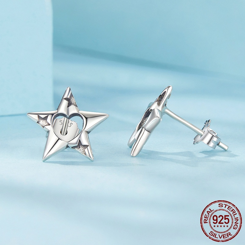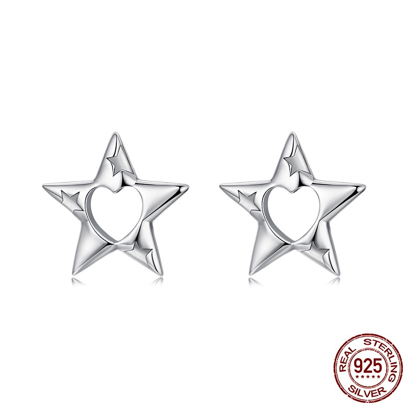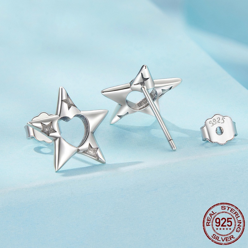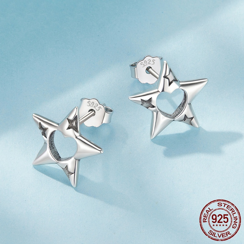 S925 Sterling Silver Hollow Pentagram Stud Earrings