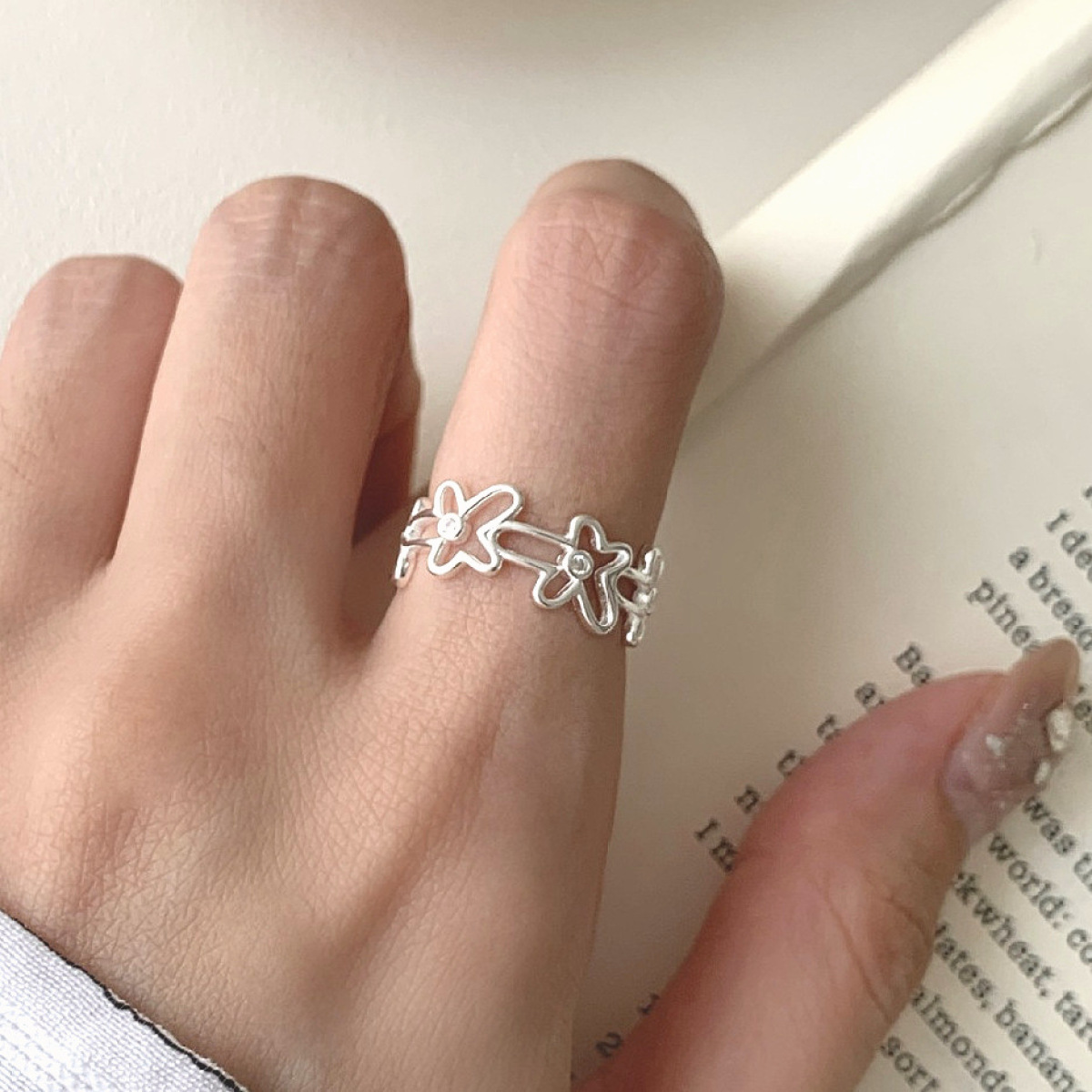 Color: Hollow flower ring-Silver