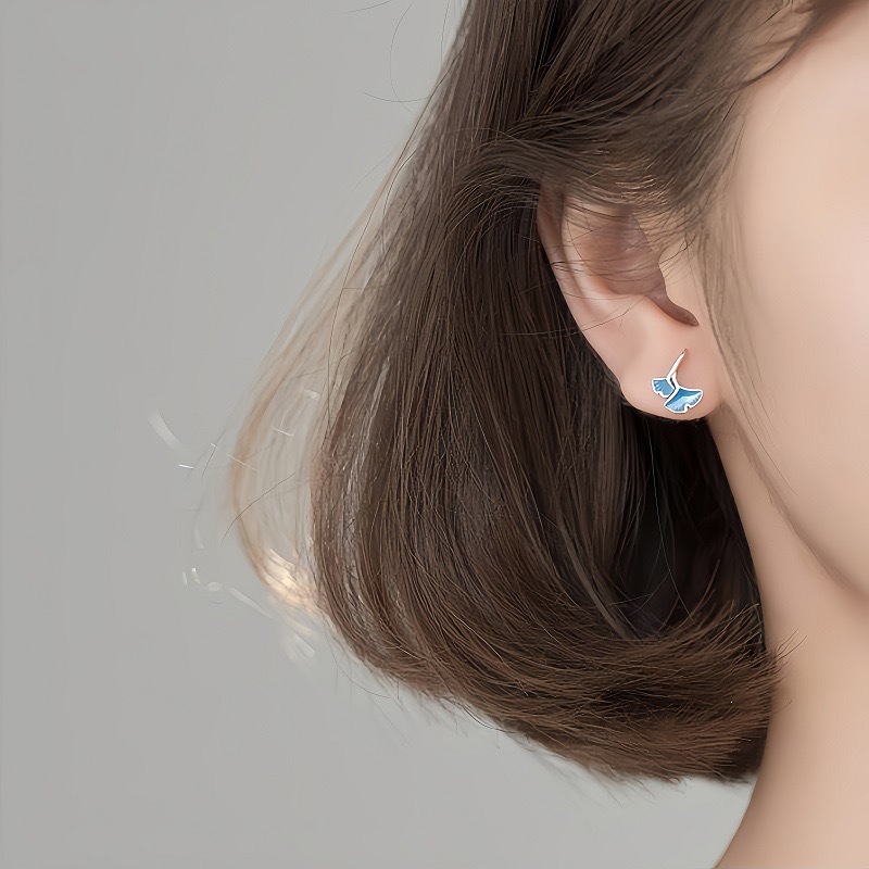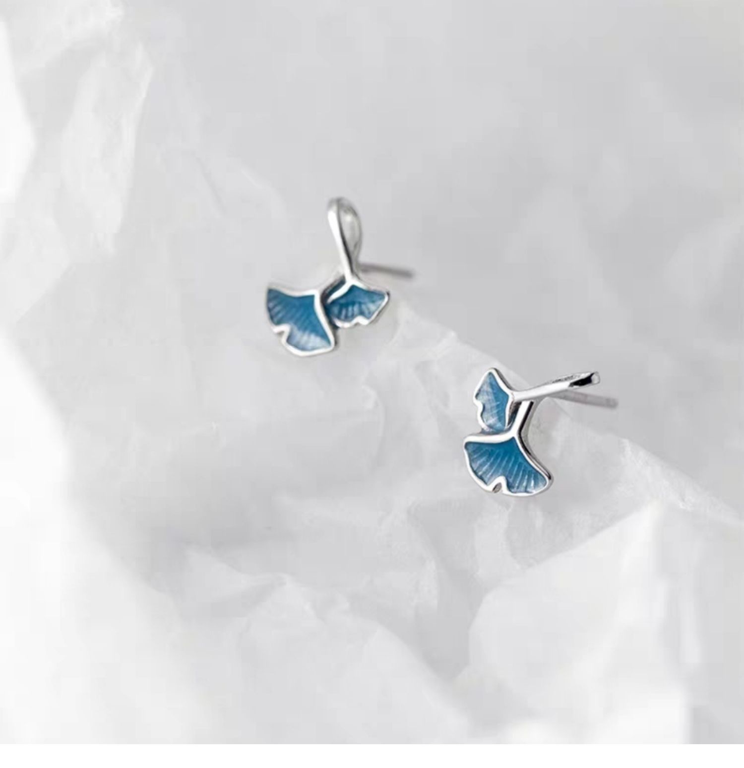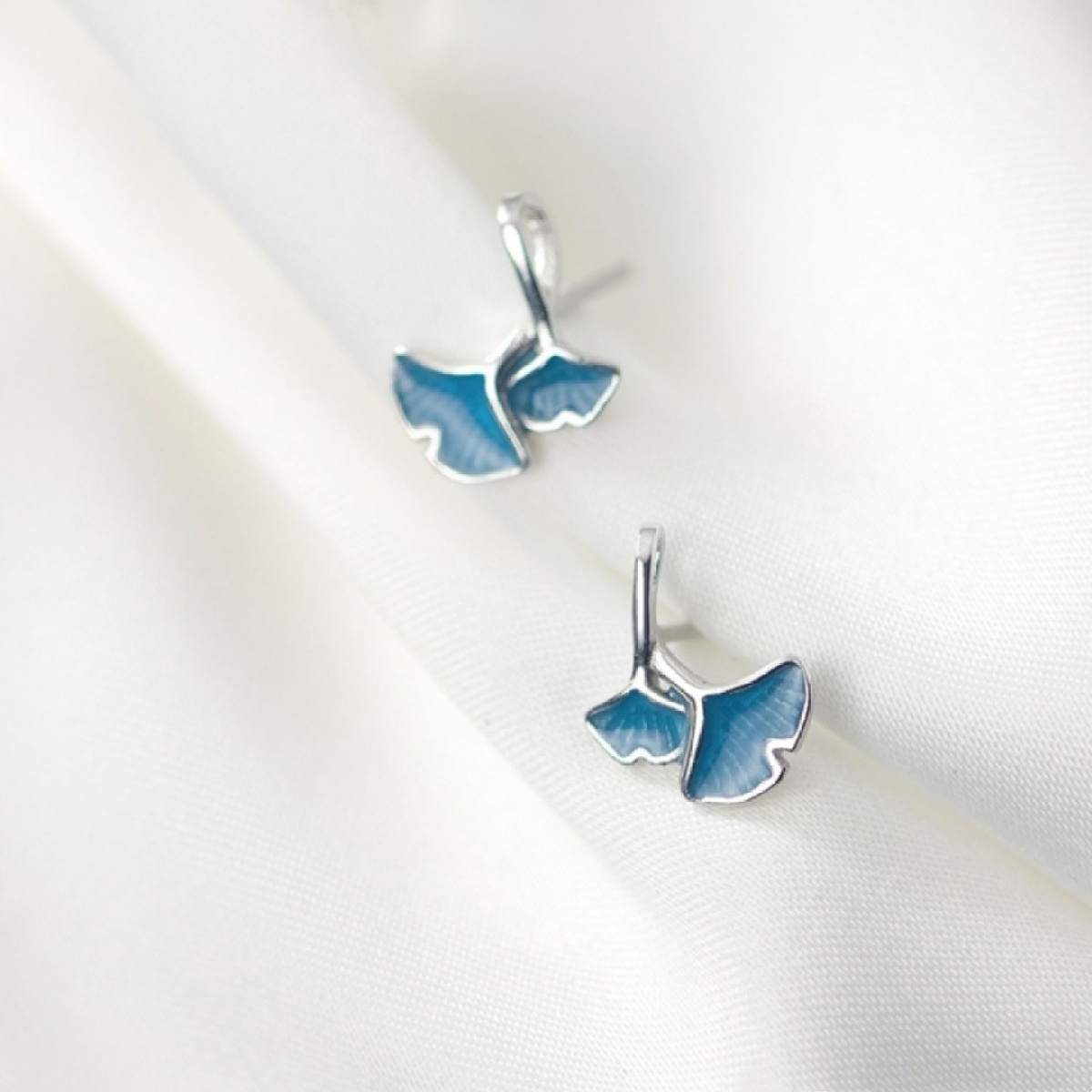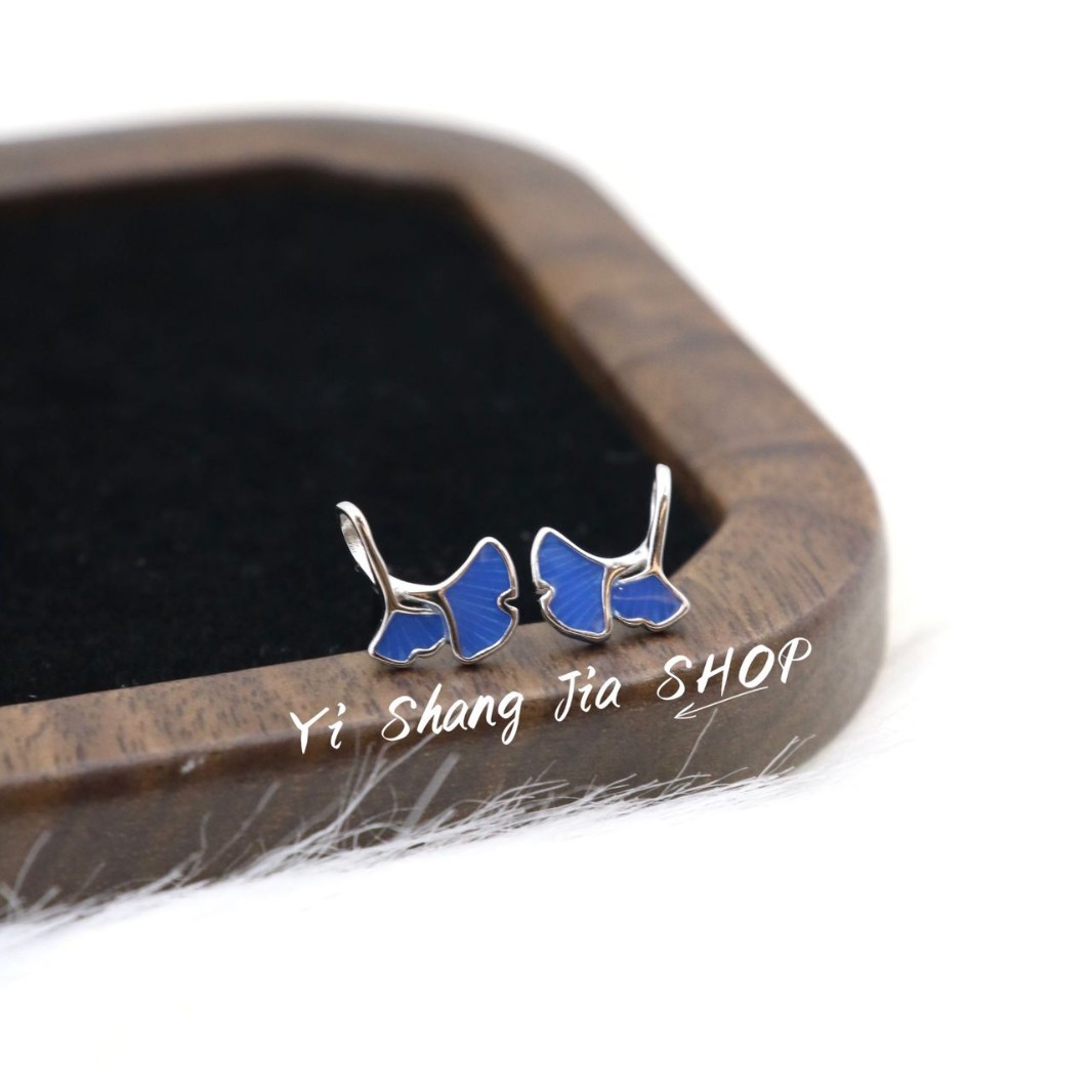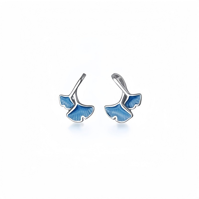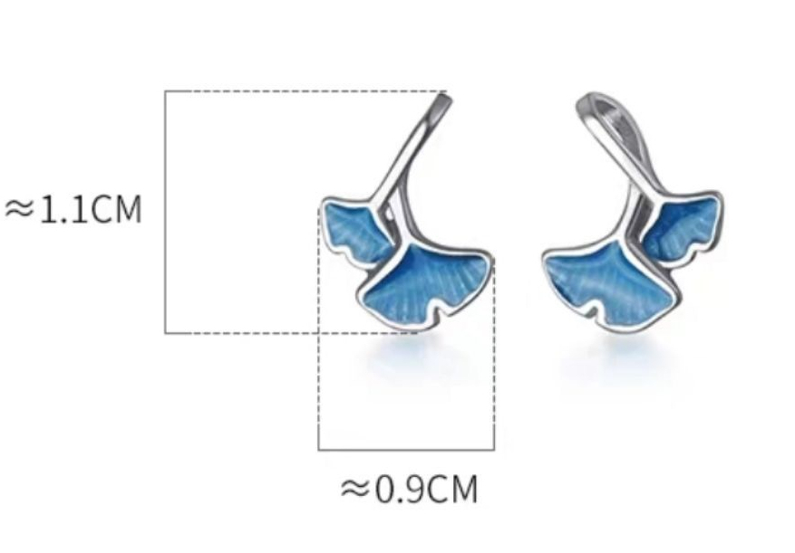 S925 Sterling Silver Japanese Blue Ginkgo Leaf Small Earrings