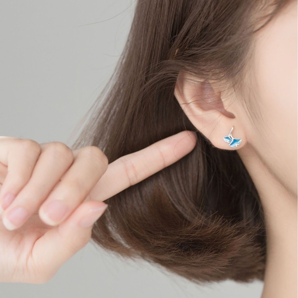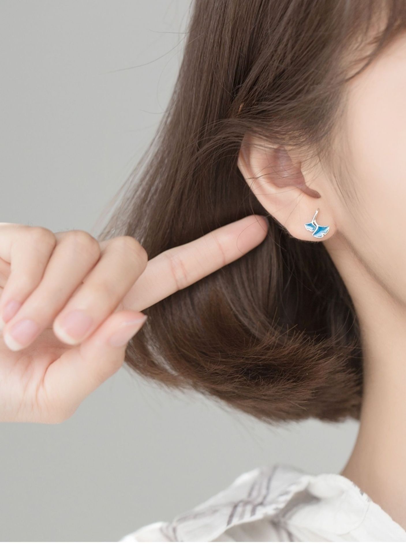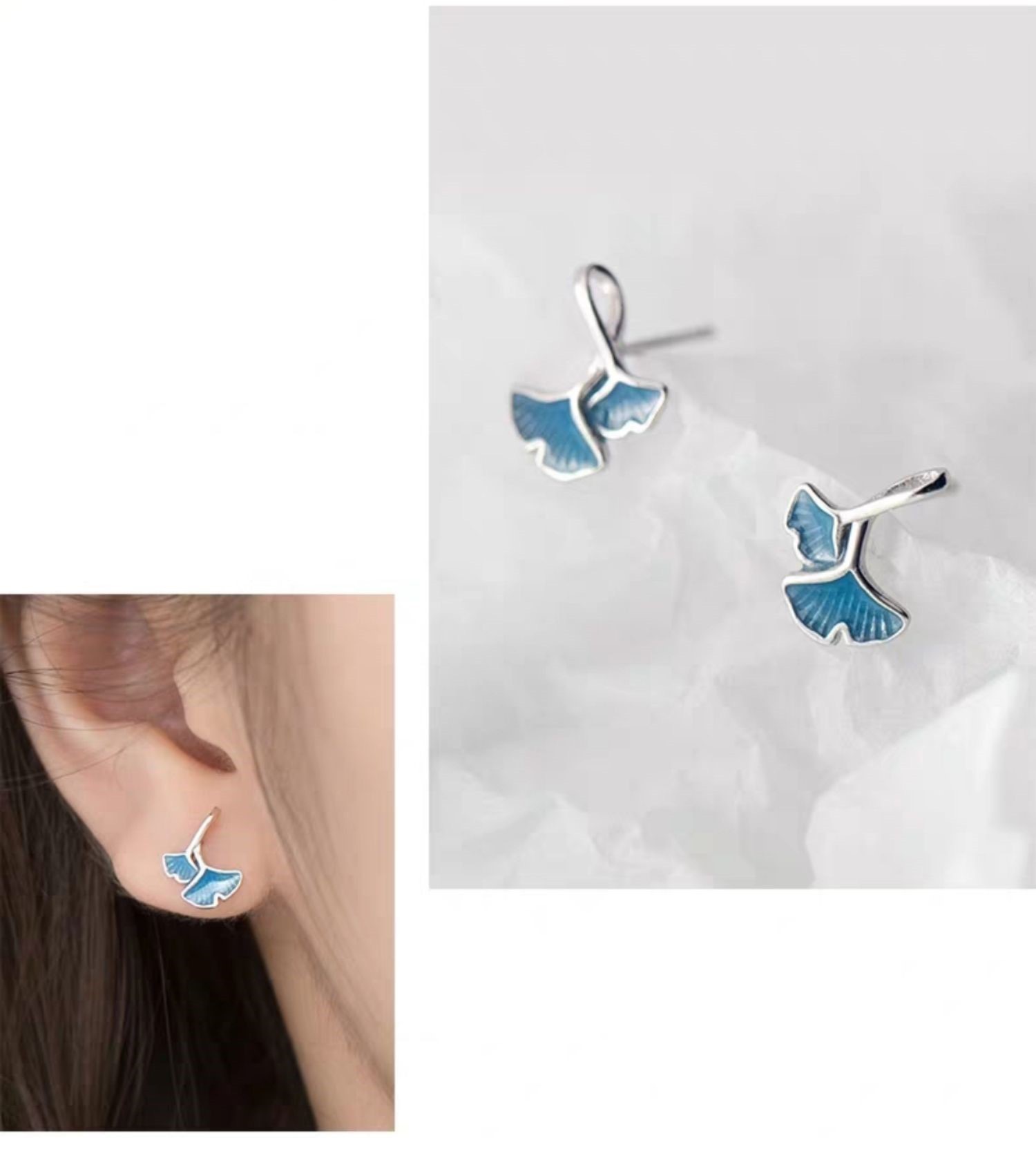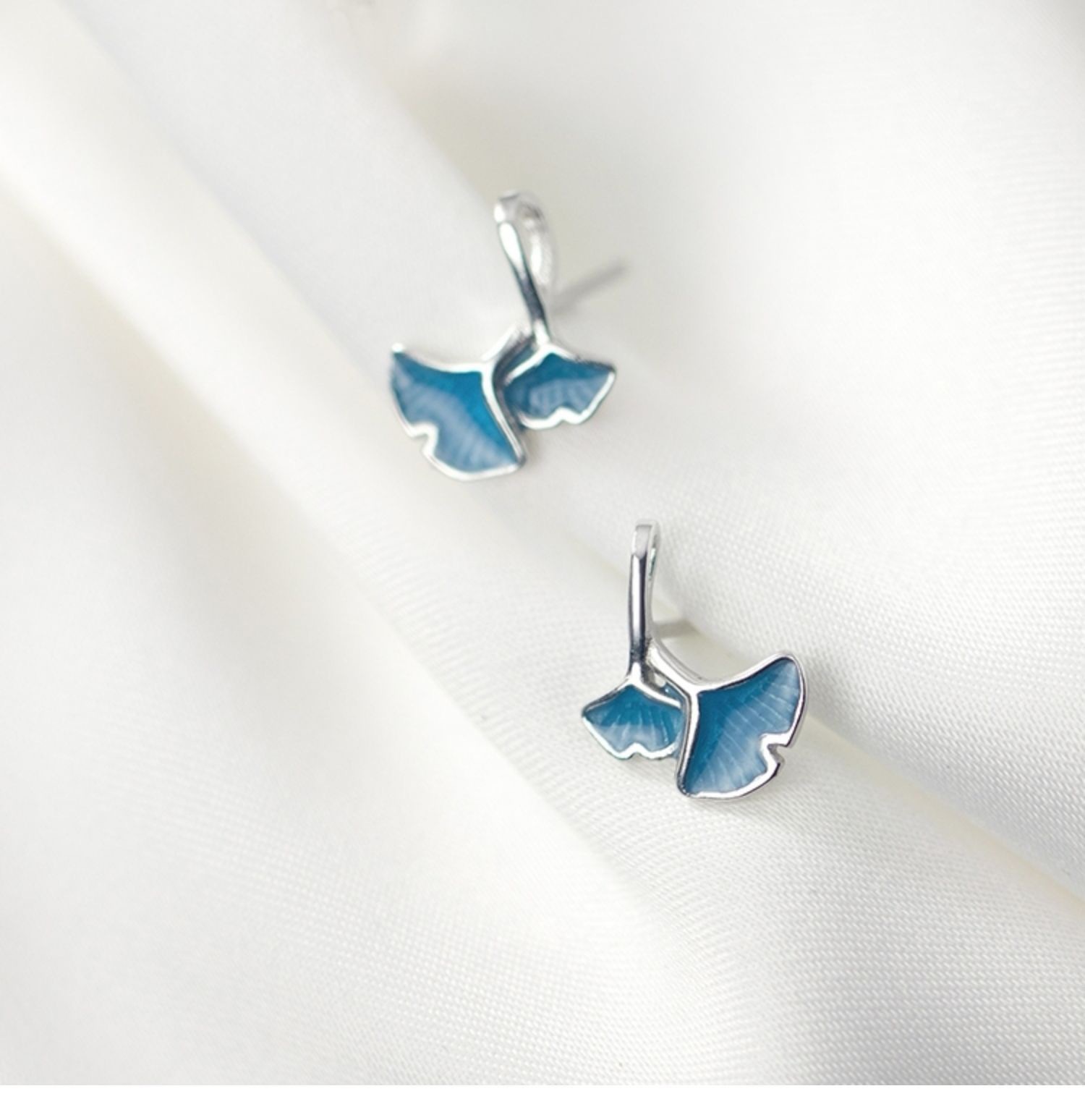 S925 Sterling Silver Japanese Blue Ginkgo Leaf Small Earrings